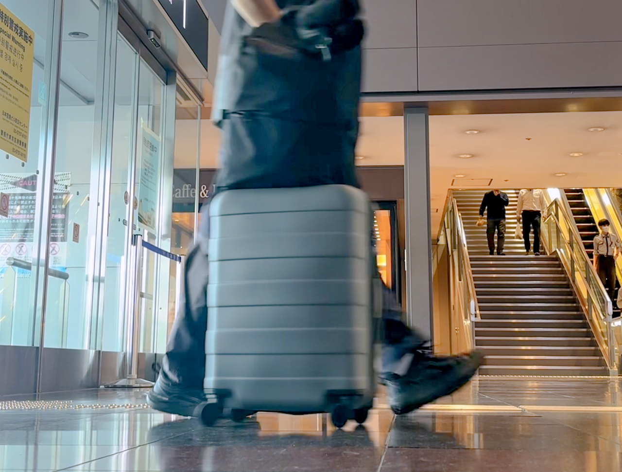 走行を支えるキャスターの音も思ったよりも静か。荒目のアスファルトの上でもそこまで気にならないし、スムーズな移動が可能。空港の床など、整った場所は言わずもがな。周囲に響く音が控えめだったのは個人的に助かりました。うるさいと気が引けますし。