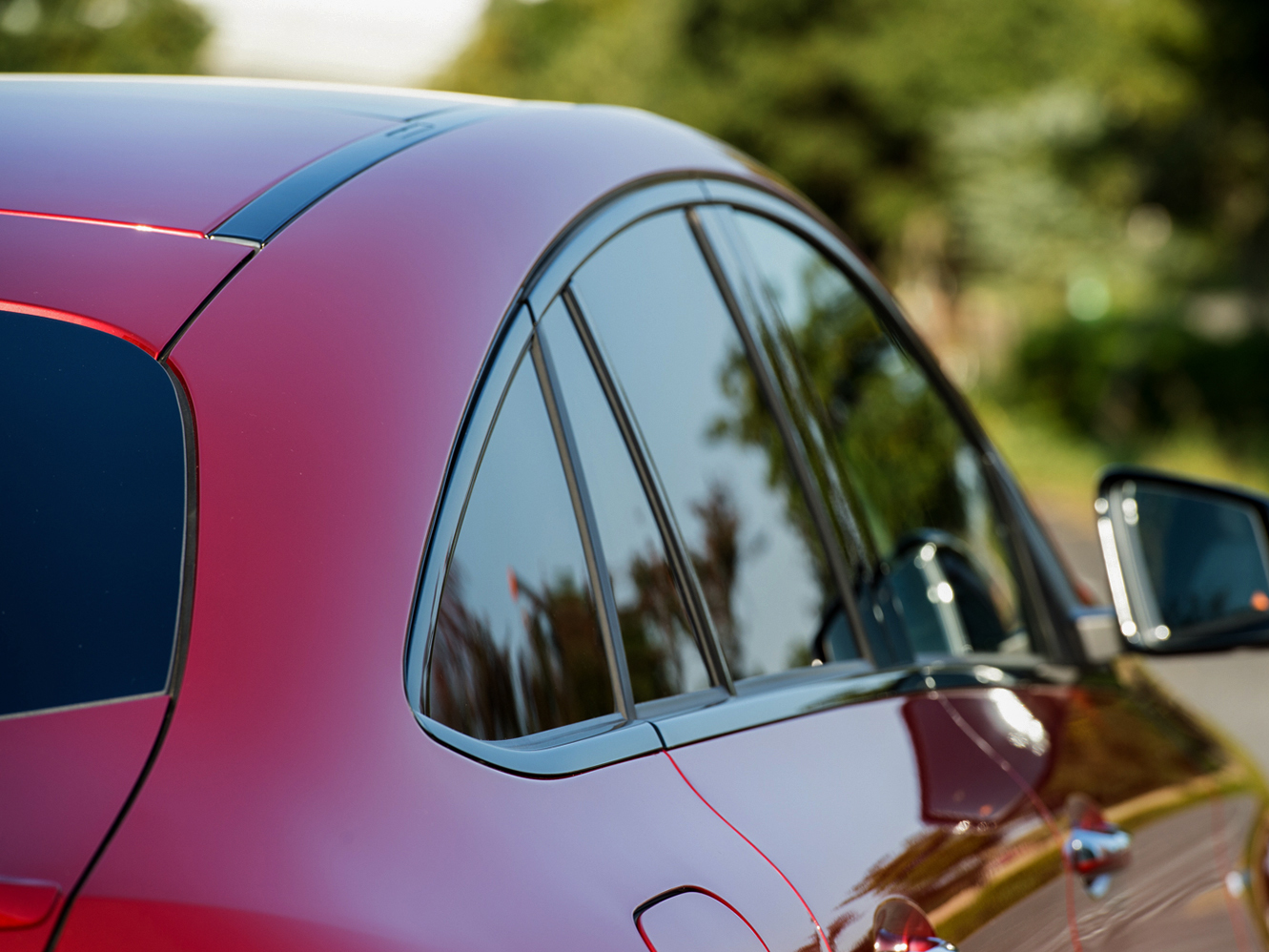 テールエンドに向かって緩やかな弧を描くルーフラインと、サイドウインドウのグラフィックが目を惹くGLEクーペ。ベースとなったGLEよりもルーフ部分を低く抑えたこと、AMGモデルでは前後とも22インチ(!)という大径ホイールを履くこともあり、美しくも力強いたたずまいを見せます。
