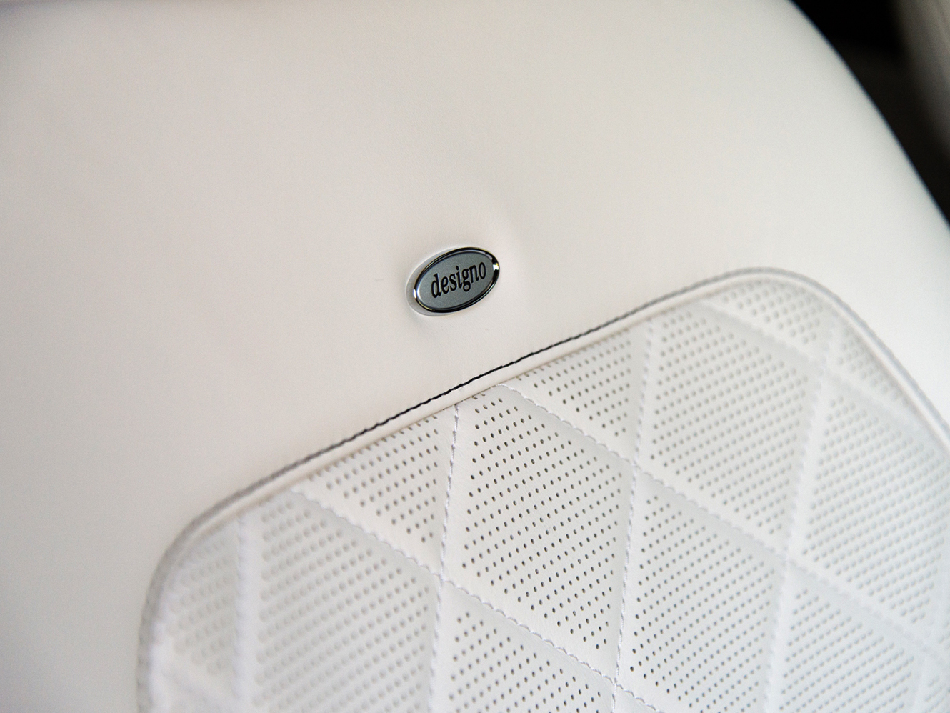 さて、インテリアはというと、試乗車には“designo(デジーノ)エクスクルーシブパッケージ”と呼ばれるオプションがセレクトされていました。しっとり柔らかなナッパレザーのシートは、ポーセレンと呼ばれる濃い目のアイボリー。さらに、シートのセンター部分やドアトリムにはダイヤ状のステッチがあしらわれており、なんとも豪奢な雰囲気です。