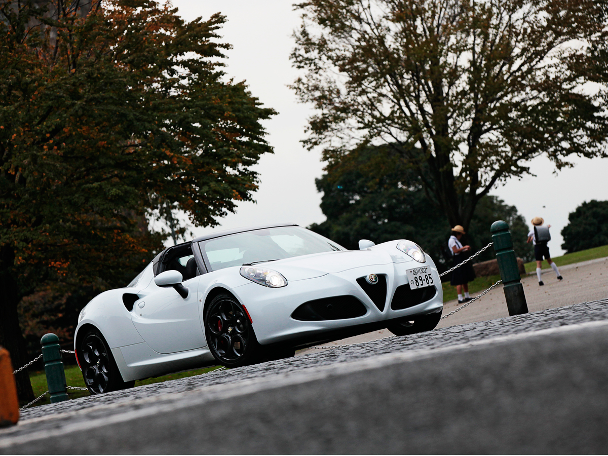 1960年代の伝説的なスポーツカー、アルファロメオ「ティーポ33」の現代版と謳われる4C/4Cスパイダーは、なるほど、雄々しく美しい。惜しむらくは、フランコ・スカリオーネの手になる「33ストラダーレ」に見られた、天才のひらめき、即興と官能、そしてある種の儚さ…、そういったウエットな要素が排除され、生一本にスポーティにまとめられていることだ…と、蘊蓄野郎の自分が心の中で叫んでおりますが、それはともかく、2011年にコンセプトモデルが披露され、その2年後に“まんまそのまま”といったイメージでアルファ4Cの市販が始まった時には、世界中のアルフィスタこと熱烈なアルファロメオファンが喝采を叫んだものです。そして翌年にはスパイダーが追加されました。