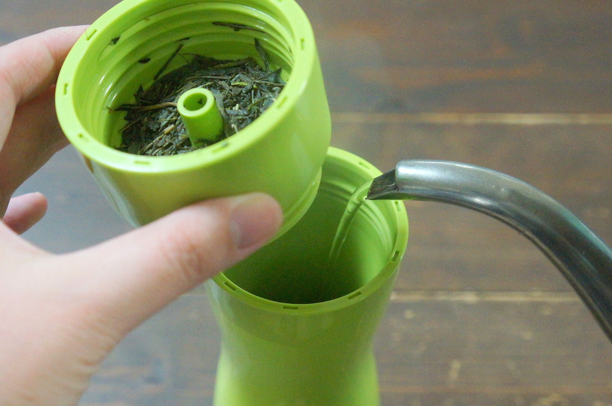 フィルターに茶葉を入れ、お湯を注いだらタンブラーを引っくり返しましょう。好みの濃さになったら、タンブラーを再び引っくり返します。こうするとフィルター部分が上になり、茶葉とお湯が分離されてお茶が濃くなりません。