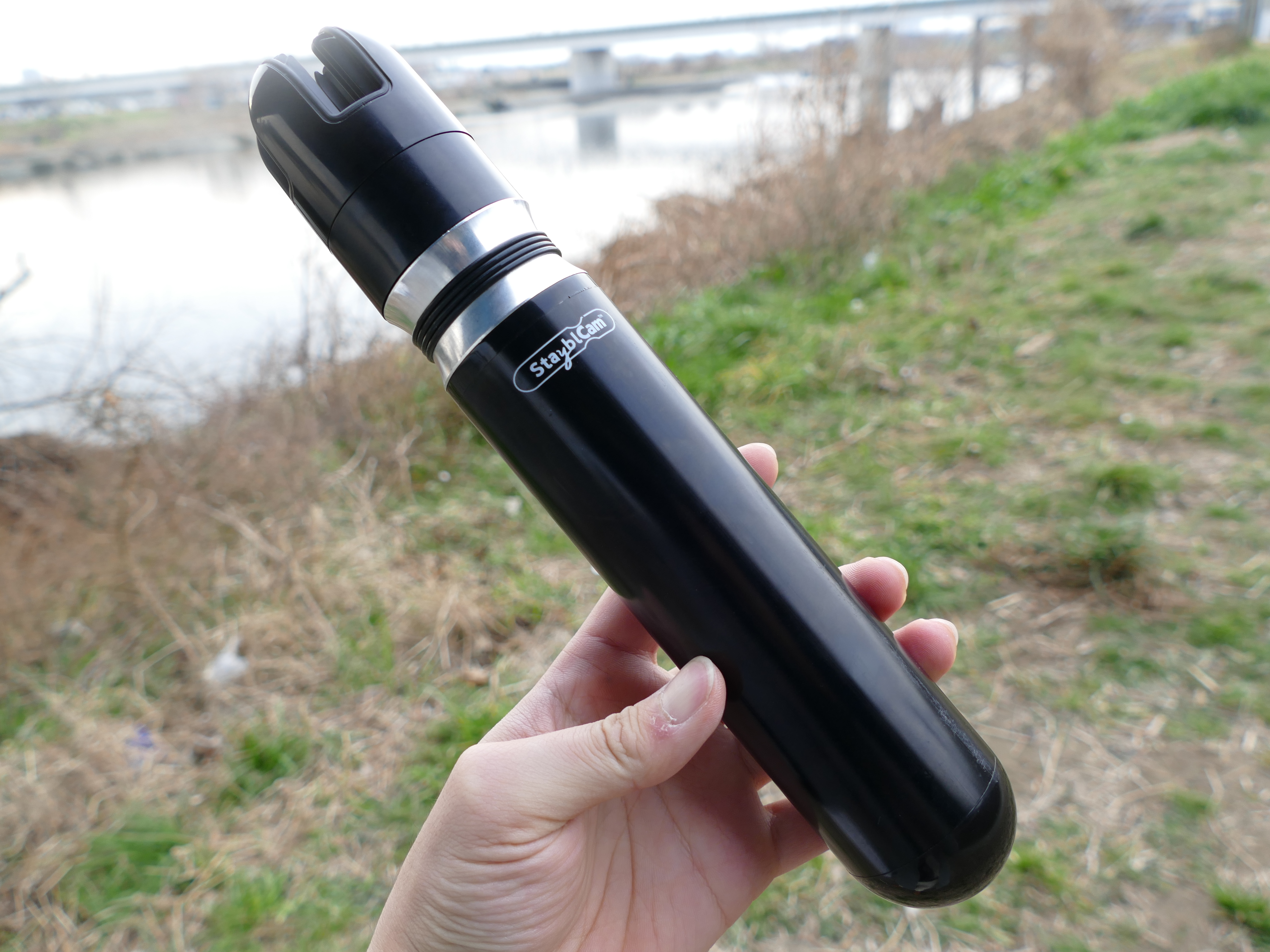 まず試したのは、バランスボディ研究所が直販サイトなどで販売する「ブレンボー by StayblCam」(1万2800円/税込)。棒状の本体をシャキーンと伸ばして使います。