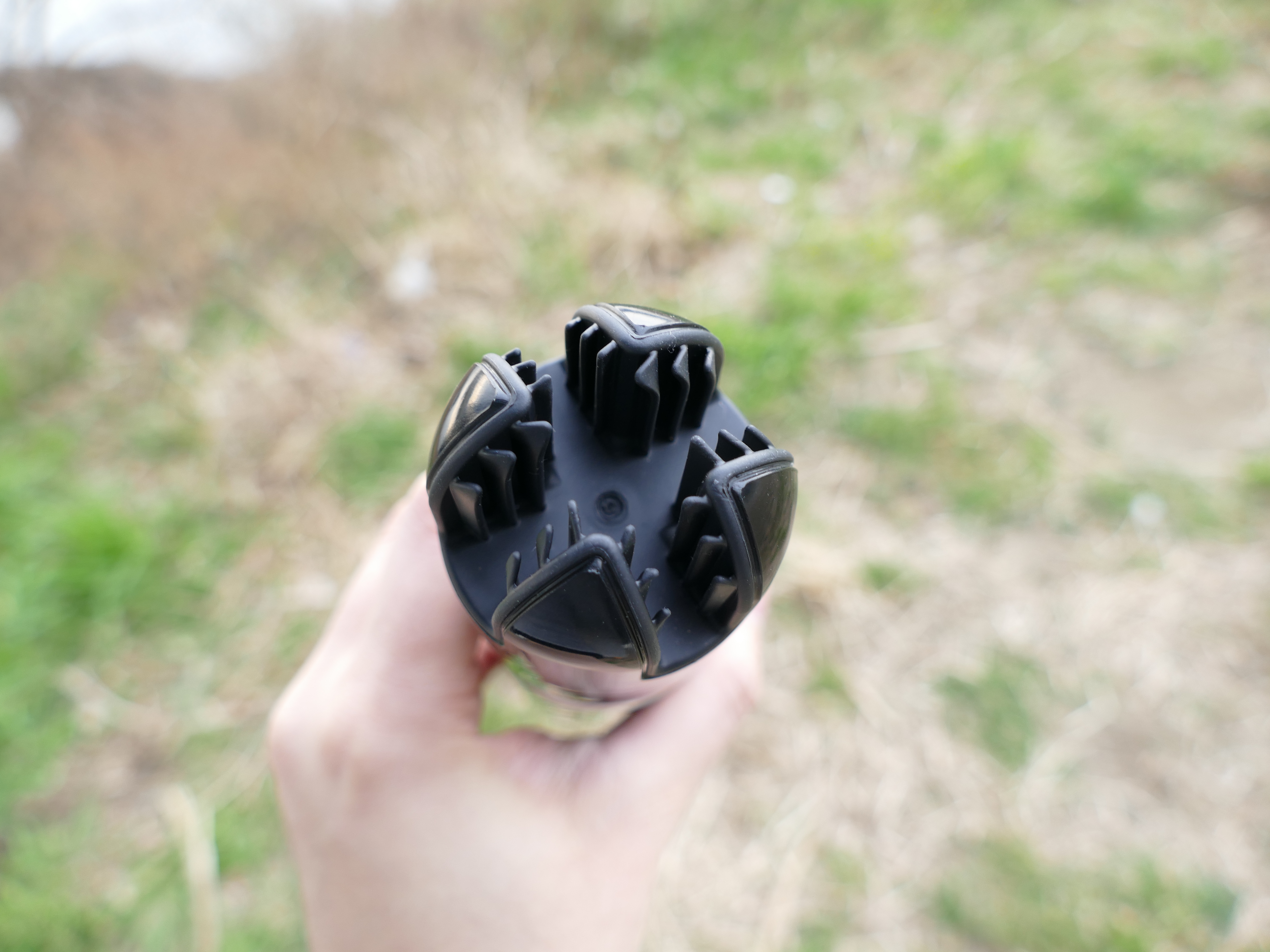伸ばしたときの最長は115cm。スティック中央にあるグリップ部分で全体を支えましょう。本体下部が重りになっているので、意外と簡単に扱えます。