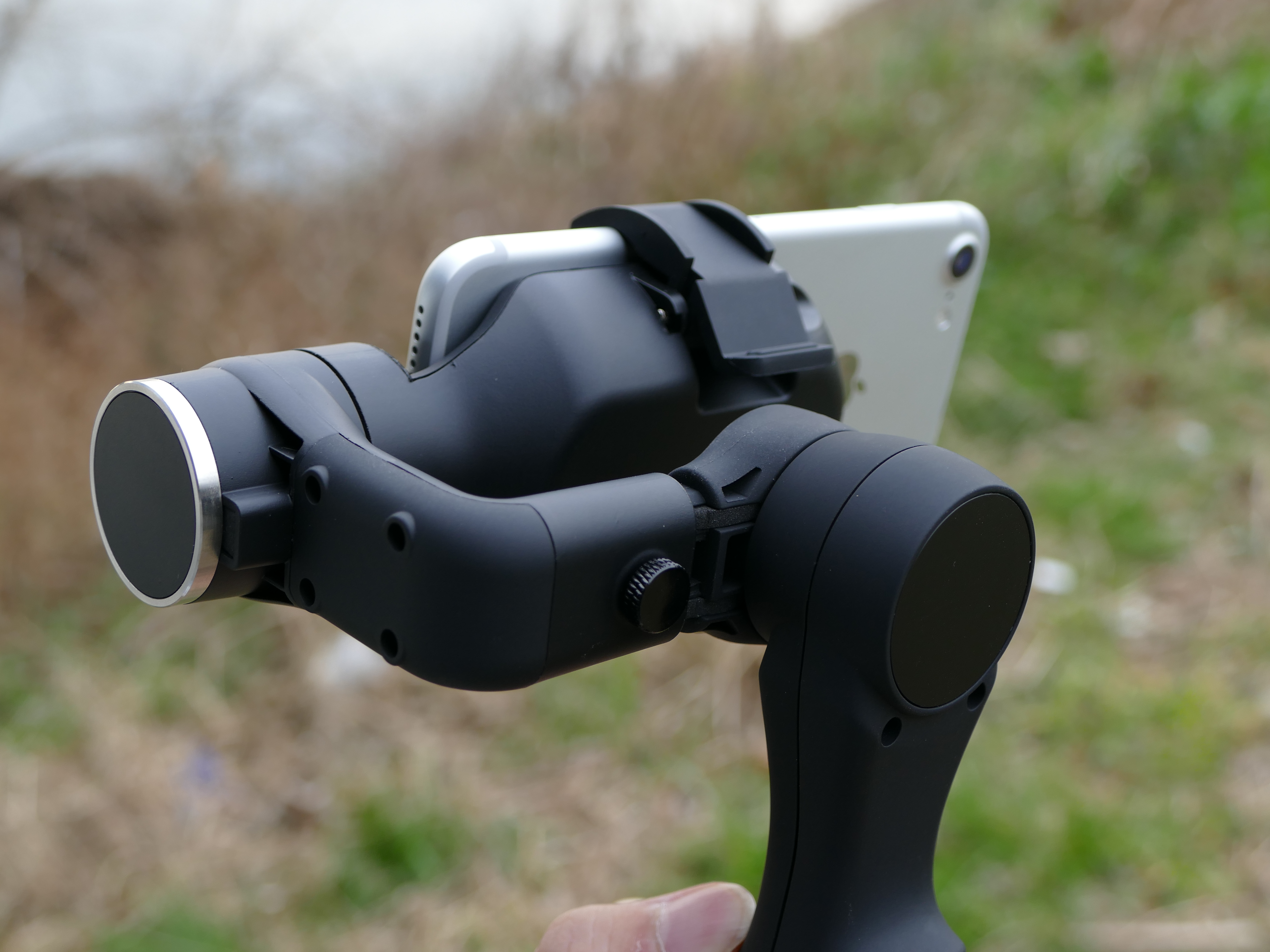 挟んだだけで、かなりしっかり固定されます。逆さにしてもぜんぜん落ちませんでした。ちなみに、先端のスマホホルダーを外すと普通のカメラも固定可能です。