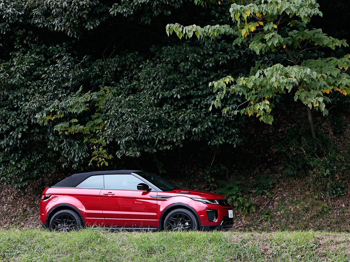 エンジンは、オールアルミの2リッター直4ターボ(240馬力/34.7kg-m)を搭載。3.5リッター級のアウトプットで、イヴォークのオープンボディを引っ張ります。組み合わされるトランスミッションは、贅沢な9速AT。優男ご用達の晴れやかなクルマとして、スムーズに、十分な動力性能を発揮します。