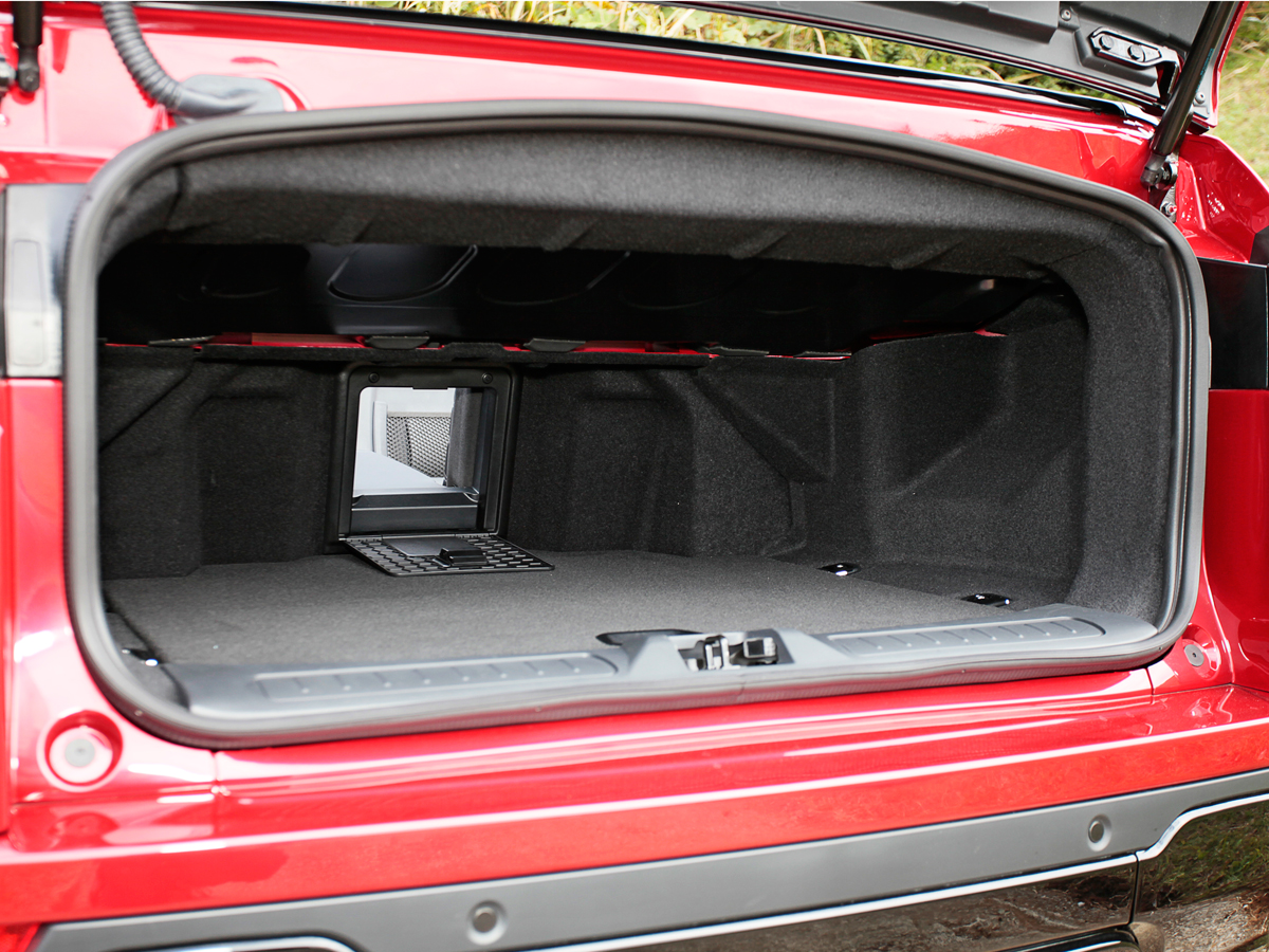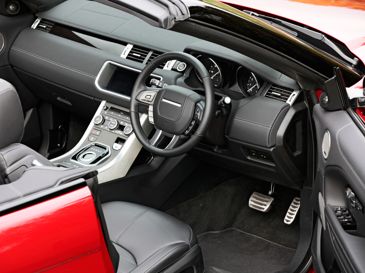 さて、イヴォーク族の末弟として加わったイヴォーク コンバーチブルは、Z字状に折り畳まれる幌を収納するため、ボディ後半に手直しを受けました。防音仕様のしっかりとした幌は、トンネルコンソールのスイッチを操作することで、18秒でオープン、21秒で閉じることができます。48km/hまでなら、走行中でも可動します。