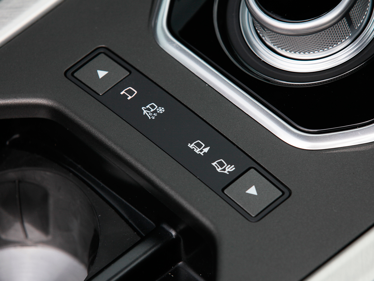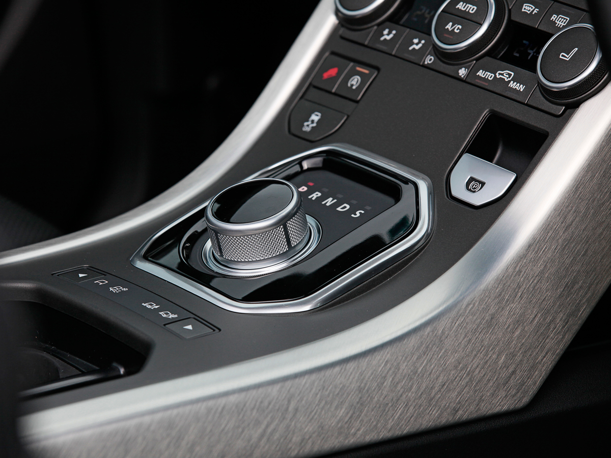 オックスフォードレザーなど、高級素材をふんだんに用いた室内は、インパネまわりを含め、イヴォーク一族の一員として見慣れたもの。もちろん、スターターを押すと同時にせり上がってくる、ダイヤル式のシフターも装備しています。