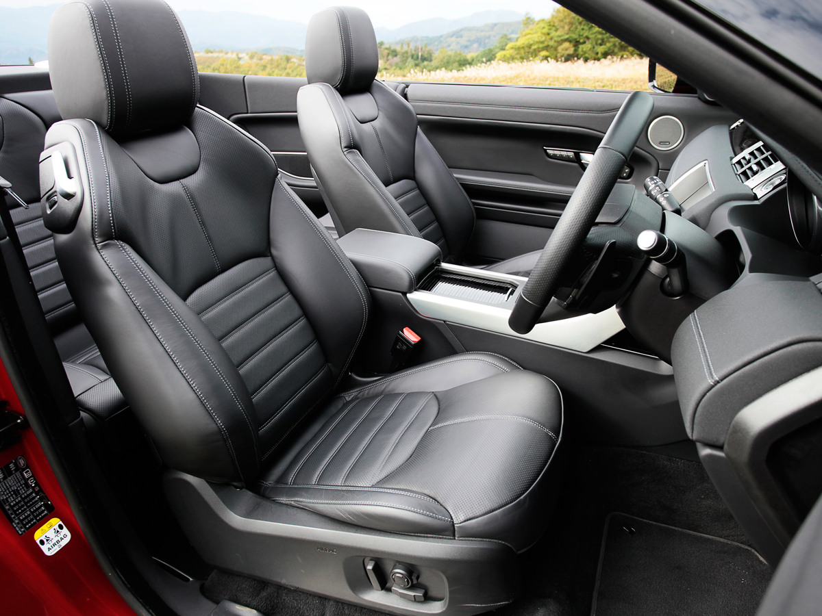 リアシートは、立派な革張りのもの。季候がいい時分にはオープンにして、仲のいい友人を後ろにも乗せてワイワイ走るのは楽しいことでしょう。とはいえ、このクルマの後席は、あくまでプラス2と捉えるべき。オープンボディのイヴォークは、基本、カップルのためのクルマです。姿カタチはSUVなれど、イヴォーク コンバーチブルは身も心もスペシャルティカー。SUVの細分化は、ココまで来たのです。