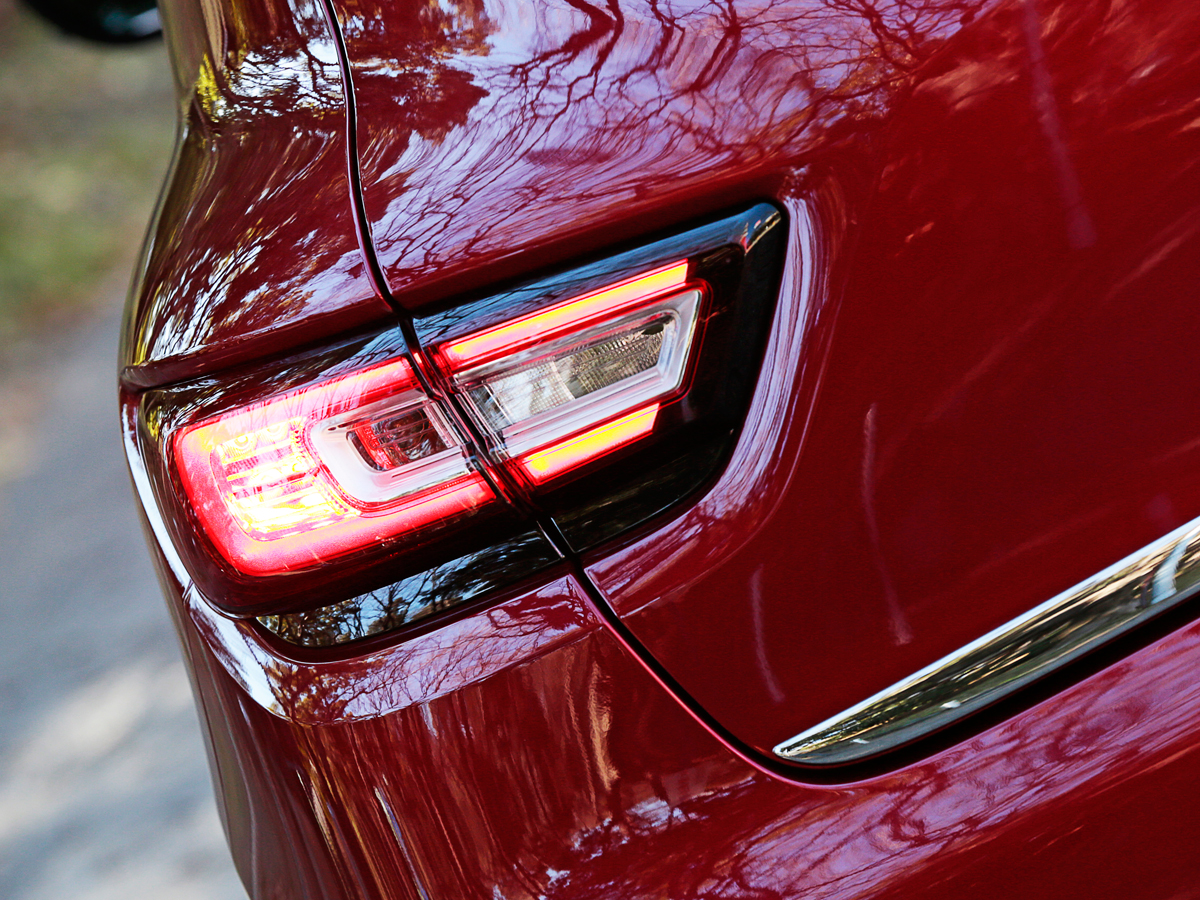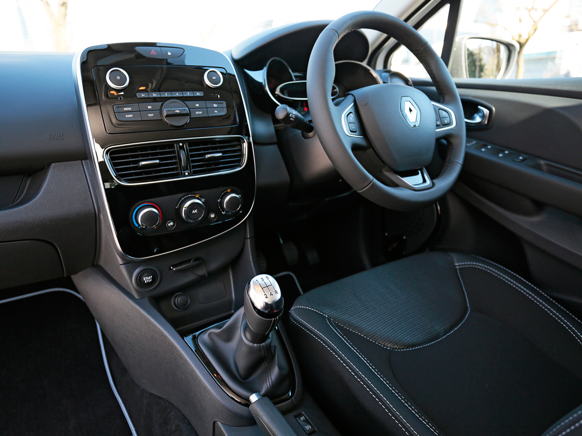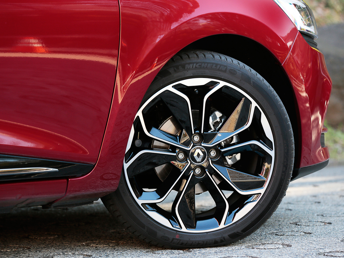 ファブリックとレザーのコンビネーションシートは、かつてのルノー車ほど「スペシャル!」な感じではありませんが、依然としてオシリにやんわりと優しい、座り心地のいいシートです。試乗車のボディカラーに合わせ、ダッシュボード、ドアの内張りほかに、赤のアクセントが反復されます。