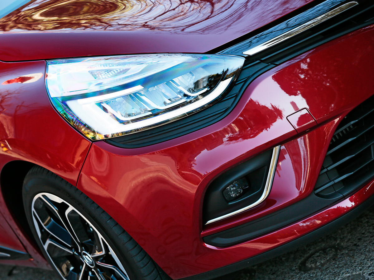 外観では、フロントヘッドランプをはじめ、フロントフォグランプやリアランプがLED化され(インテンス/ゼン)、フロントバンパーの形状が変更されました。バンパー下部左右のフォグランプが、F1のウイングを模したカタチに囲まれ、リアランプの中が“C”の字に光るようになりました。