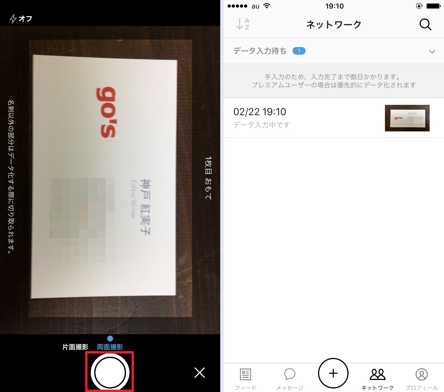 「Eight」の特徴は、名刺を撮影すれば “データ化はオペレーターにおまかせ” できる点。もらった名刺をその場で撮影しておいたら、“外回りをしている間にデータ化が済んでいた!” なんてこともありえます。また、ユーザー同士でメッセージを送り合ったり、近況を報告しあえる、といったアプリならではのサービスも充実。自分から積極的に名刺交換をし、交流を広げたい人におすすめです。