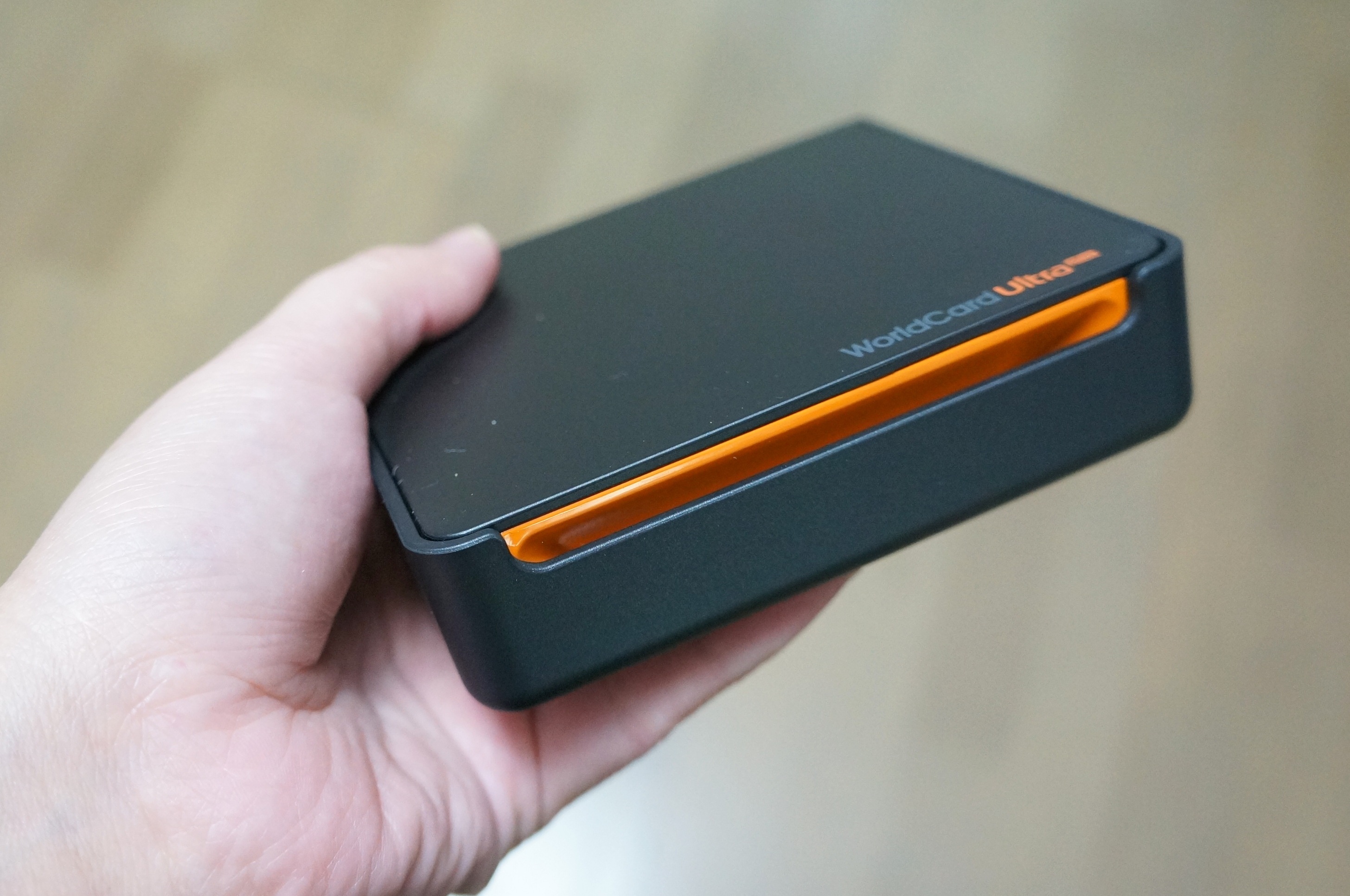 「WorldCard Scan」で名刺をデータ化するには、パソコンが不可欠です。そのため、“もらった名刺をその場でデータ化” するのには、不向きかもしれません。しかし、本体は片手で持てるサイズなので、持ち運びは十分に可能です。