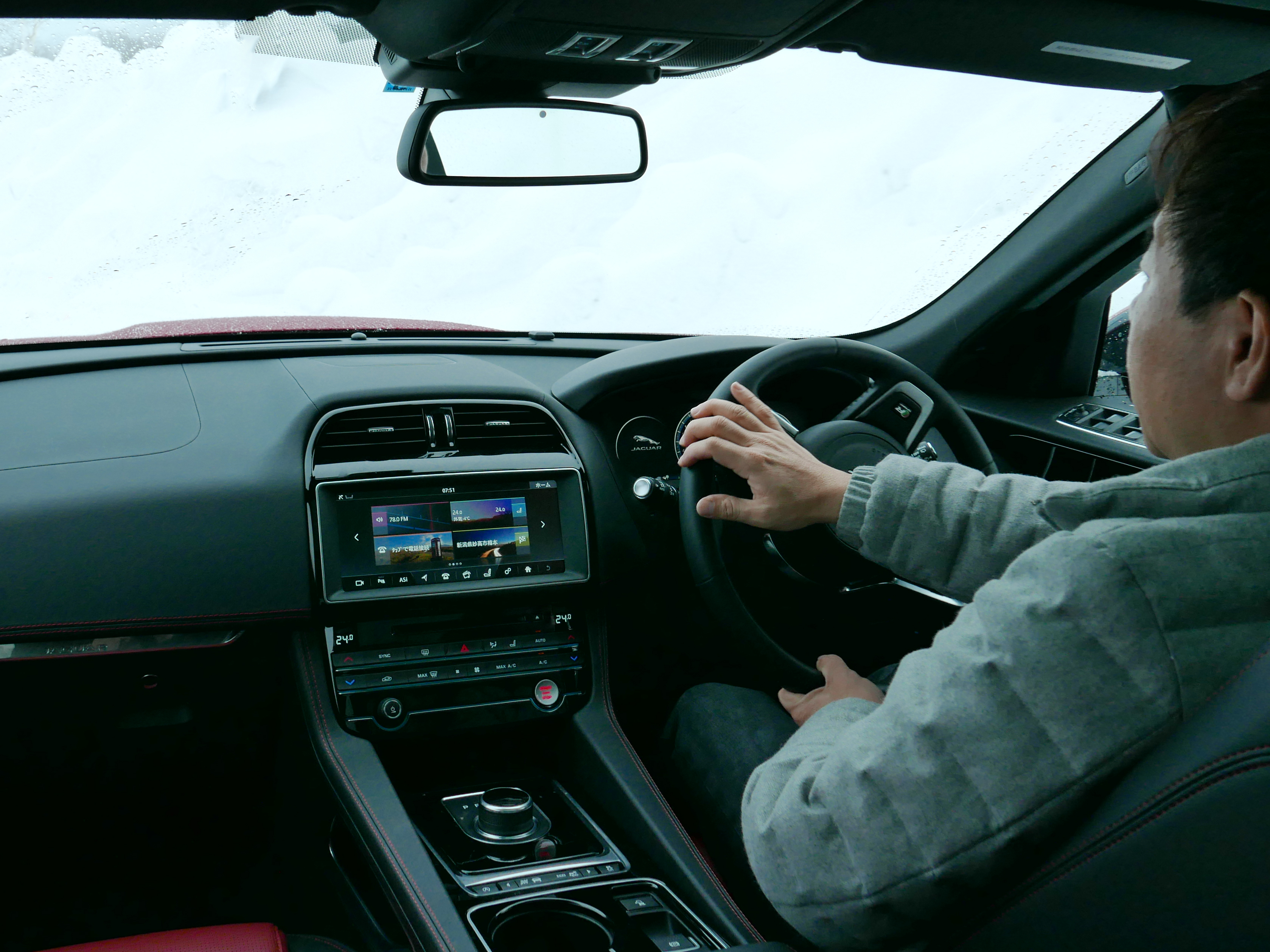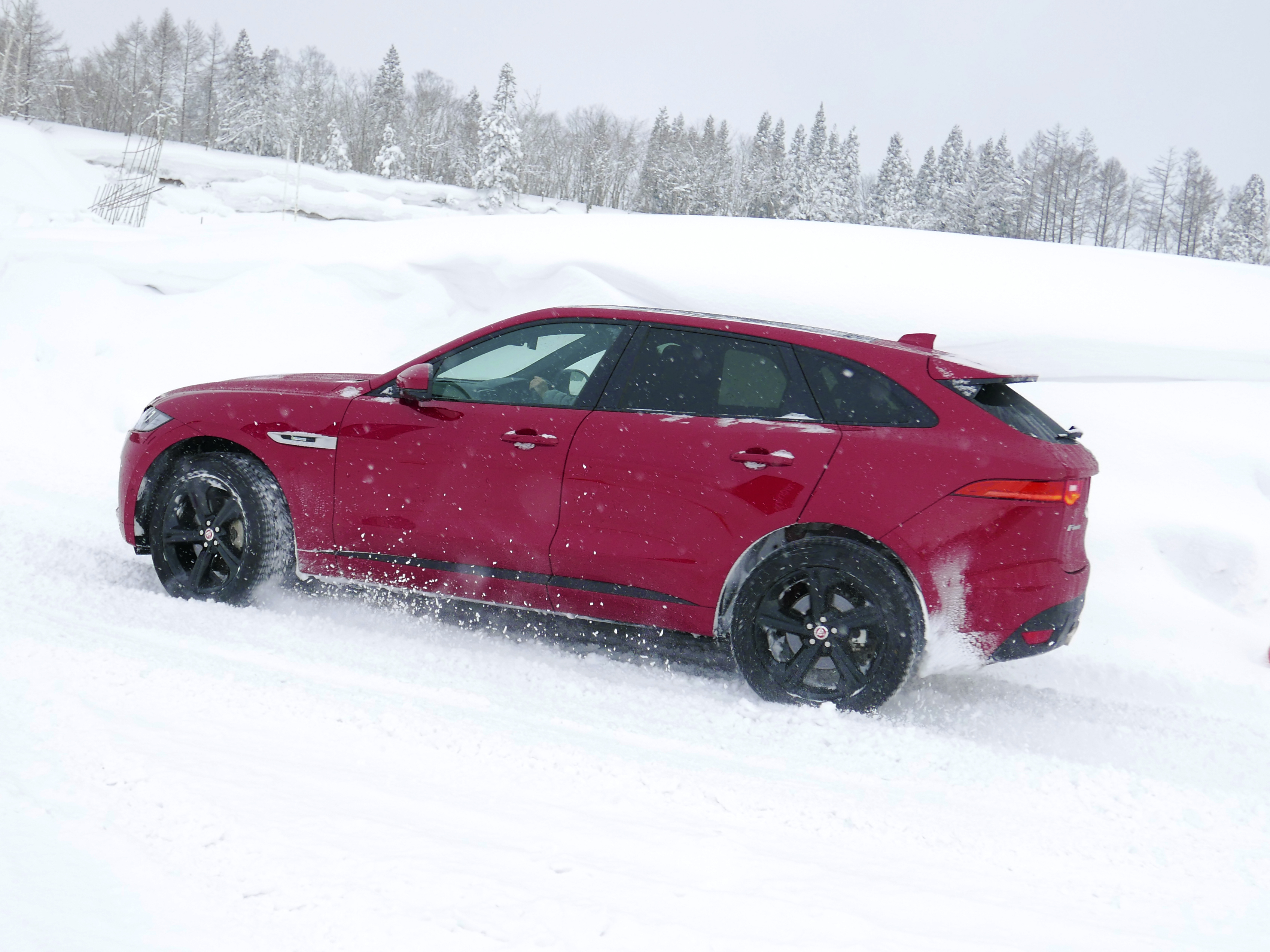 そんなF-PACE最大の個性も、路面のミューが低い雪上においては、若干、薄まったように感じた。とはいえやはり、コーナーを抜けようとしてアクセルを踏み込んだ時の車体の動きは、前から引っ張られるのではなく、あくまでも後ろから押されていくFR車的な感覚。そのため、コーナー入口で姿勢を整え、ヨー(回転運動)を生じさせてからアクセルを踏む、といったアクションをドライバーが上手にやってあげないと、うまく走ってくれないように感じた。