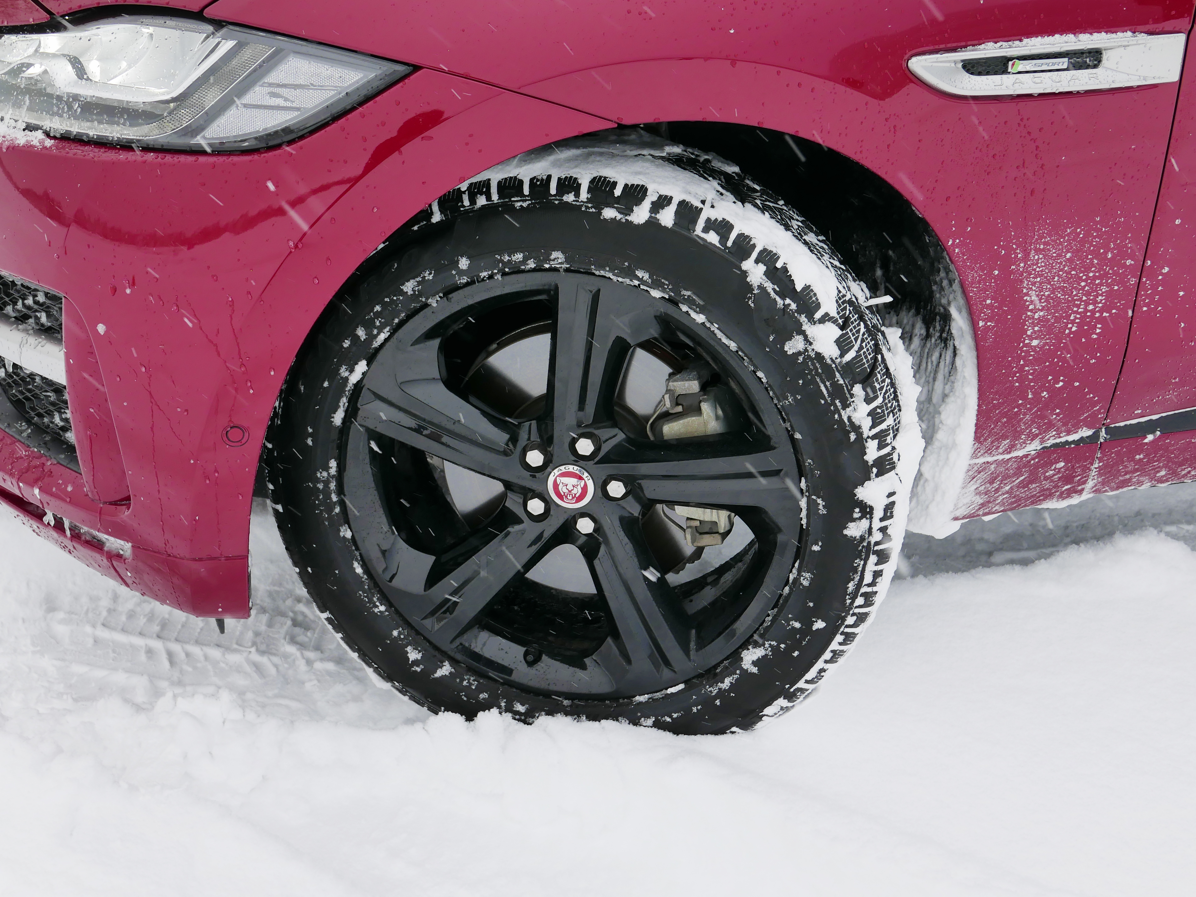 まず、2015年にデビューしたジャガー初のSUV、F-PACEに乗る。このモデル、ドライ路面においては後輪に多くの駆動力を配分するなど、FR車的なスポーティな動きを重視しているのが特徴だ。ステアリングを切り始めた時の車体の動きはとてもクイックで、F-PACEの“F”が本格スポーツカー「Fタイプ」の頭文字から引用された事実を明確に物語る。