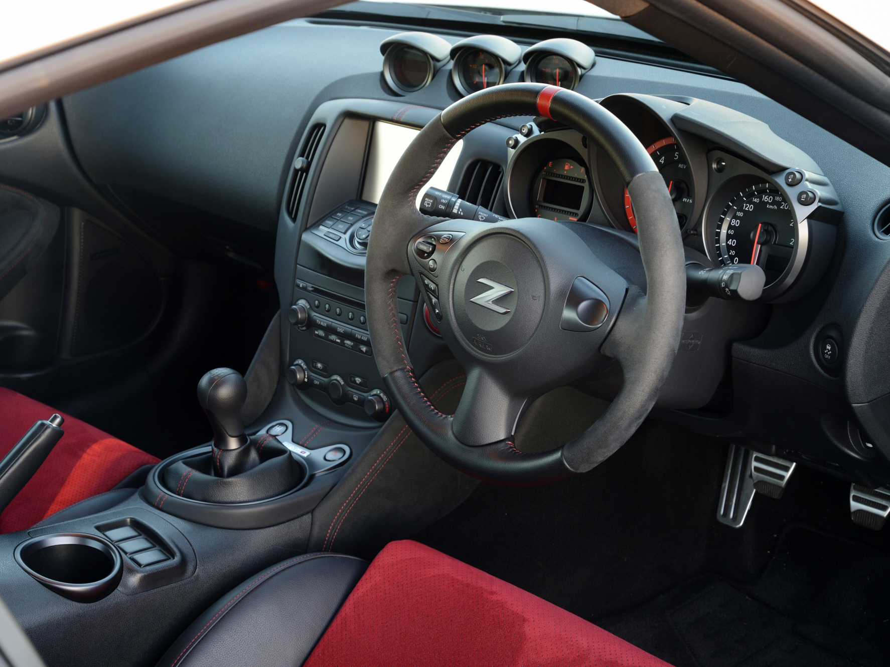 Z ニスモは、2014年のマイナーチェンジにより、他のニスモシリーズにも採用されているデザインアイデンティティ、つまり、バンパーやサイドスカートに配される赤いアクセント、LEDハイパーデイライトなどが追加されたほか、エアロパーツやホイールデザインの変更を受けています。