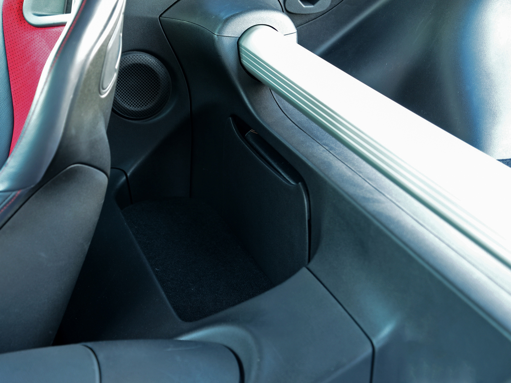 とはいえ、ドライバーをサポートしてくれる目新しいメカニズムは、このシンクロレブコントロールくらい。ブレーキ圧やエンジン出力を制御して車両の姿勢が不安定になるのを防ぐ“VDC”や、電子制御で制動力の配分を調整する“EBD”など、一般的な電子デバイスこそ備わりますが、クルマそのものは、ストイックな大パワーFRスポーツカー、という仕立てになっています。