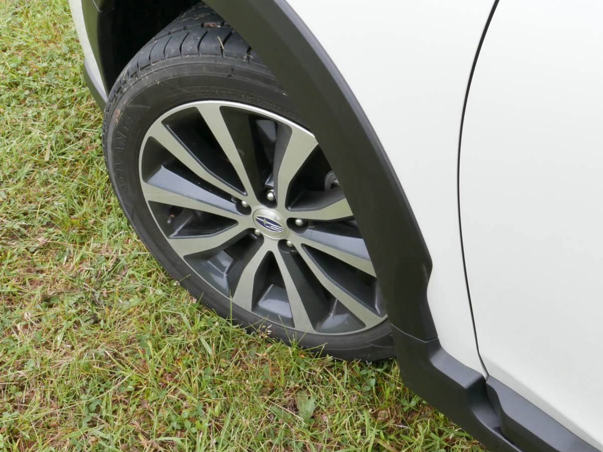 実はこれ、エクシーガと同じサイズ。SUVらしさを誇張しようとすると、タイヤサイズを大きくし、それを覆い被せるためにオーバーフェンダーを装着…。そういった手法もあります。