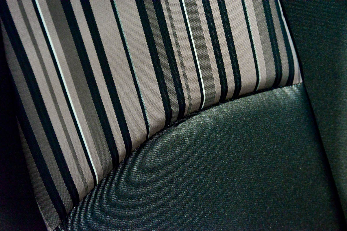 ドアを開けてみましょう。そこから眺めるインテリアは表情豊か。色、素材、形状がリズミカルにレイアウトされています。ところがドライバーズシートに座ると、印象が一変。インテリアを構成するものが水平方向と垂直(進行)方向へシンプルに整理されて見えるのです。