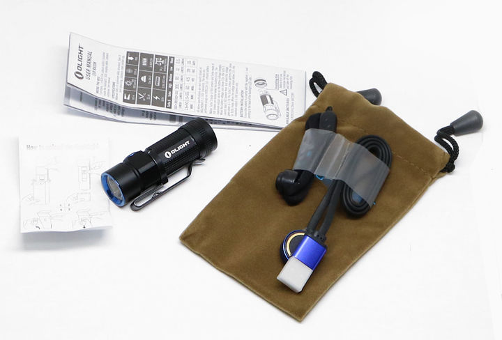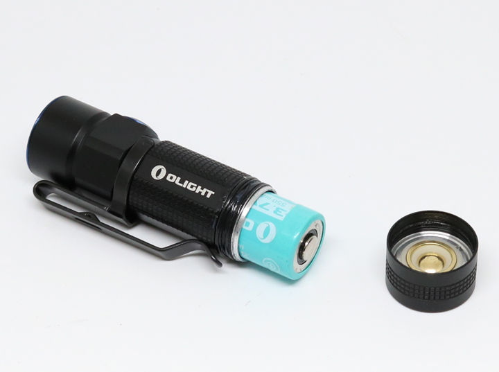 付属する16340形の充電池はS10Rと共通。乾電池や他社の汎用16340形リチウムイオン充電池でも点灯は可能ですが、マグネティックチャージャーケーブルを使用しての充電の際は専用充電池である必要があります。電池を装填する際は、凸型のプラス極をテール側にしてボディに装填してください。