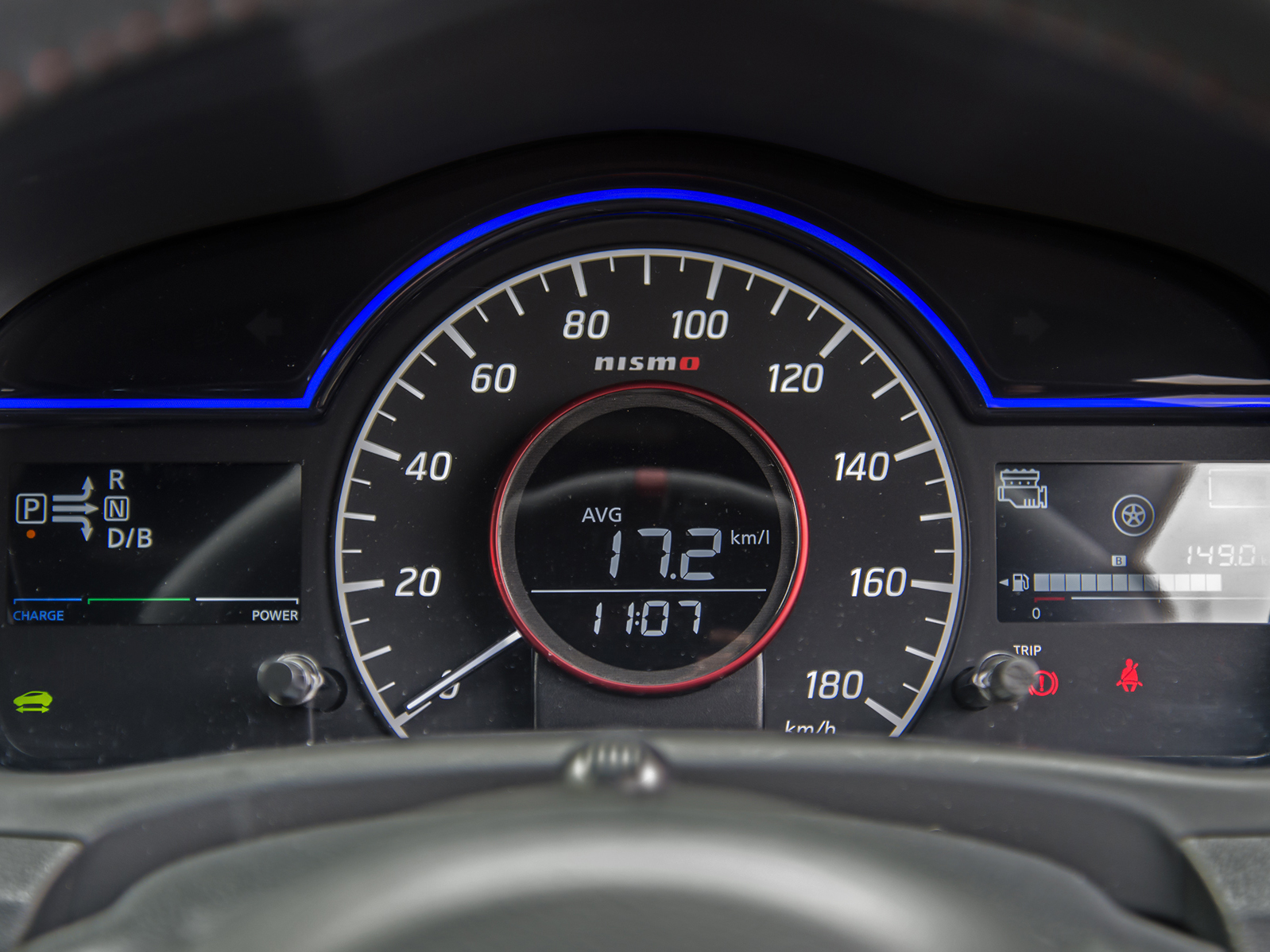 ちなみに、スポーティさがウリのニスモ仕様ゆえ“ECOモードはなんのためにあるの?”と思われるかもしれませんが、街中やツーリング時のワンペダルドライブ用と思えば、かなりありがたい存在です。当初は、Sモードの加速感との落差に少々驚きましたが、渋滞中のゴー/ストップなどは、穏やかな加速と強力な回生ブレーキにより、ほぼ右足だけの操作でストレスなく進むことができました。