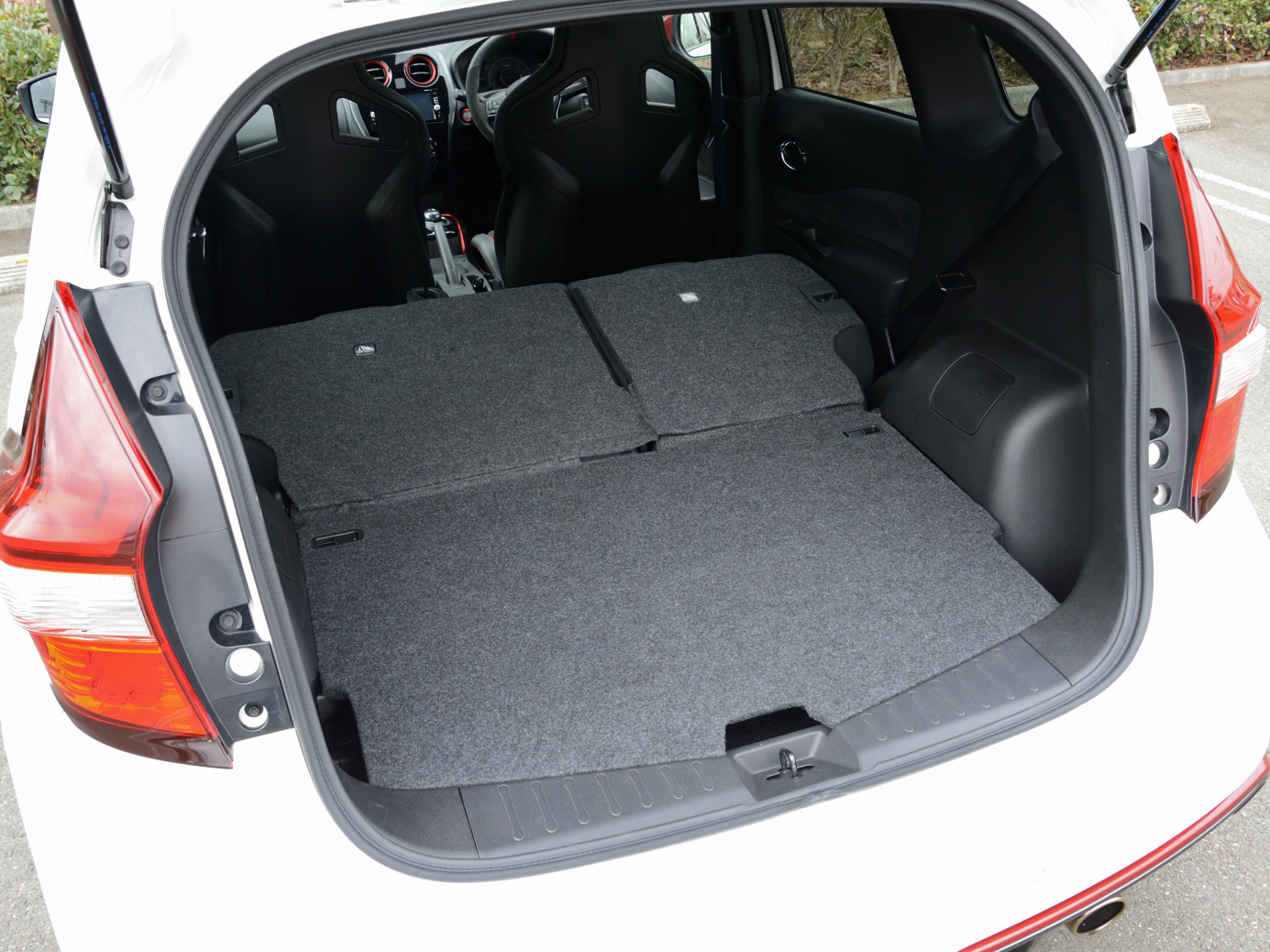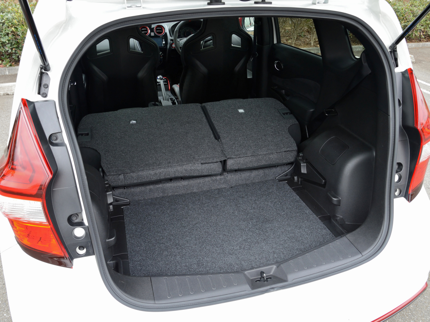 ニスモと聞くと、その心臓部が気になる方も多いと思います。駆動用の動力源は、日産「リーフ」と同じEM57モーターが担っており、発電用に1.2リッターの直列3気筒HR12DE型ガソリンエンジンを搭載しています。モーターの最高出力は109馬力、最大トルクは25.9kg-mというスペックですが、これはノート e-POWERのノーマルモデルと同じ値です。