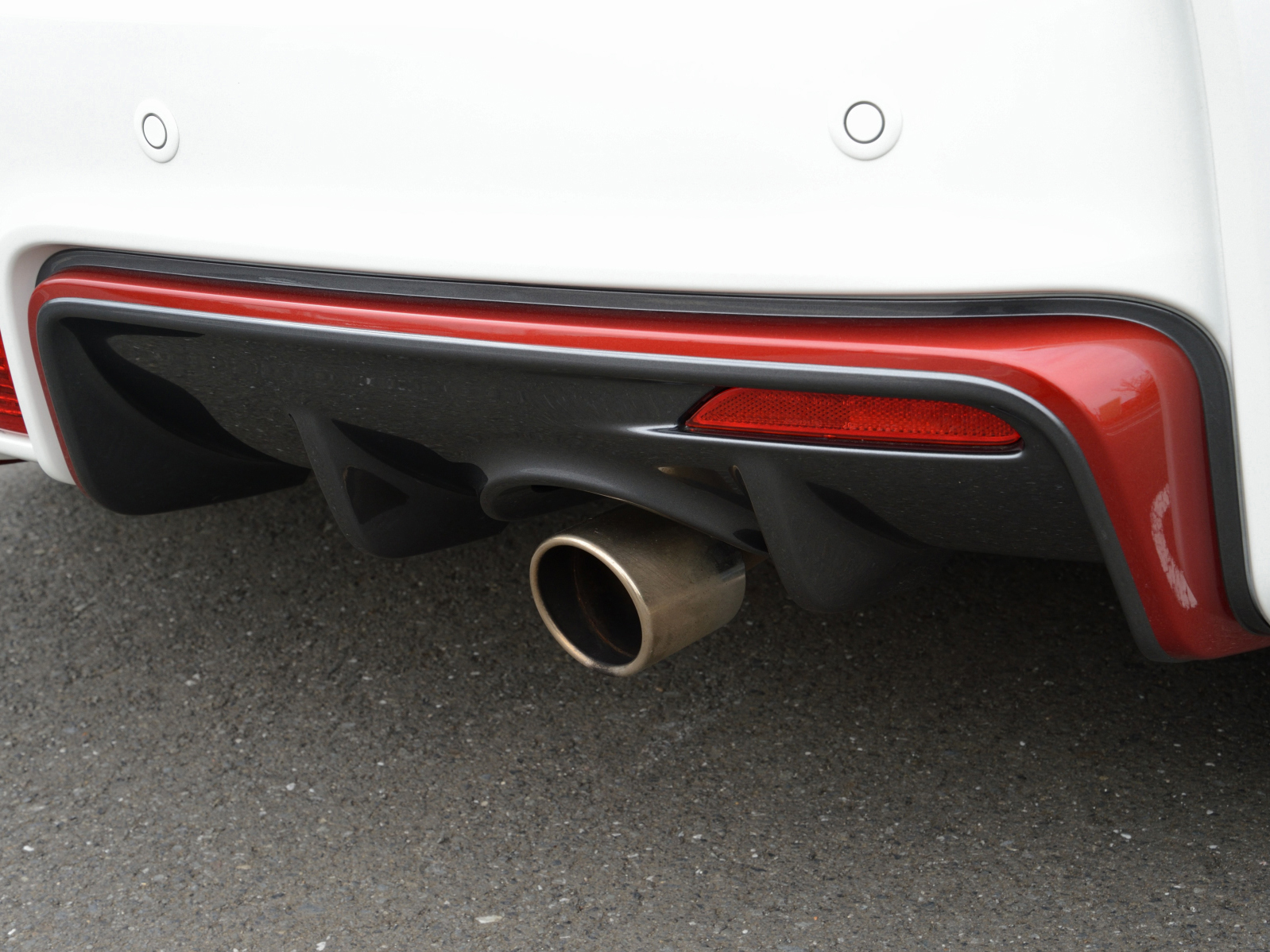 具体的には、フロントのLEDデイライトを囲むように張り出したフロントバンパー、イメージカラーであるレッドをアクセントに用いたエアロパーツやミラーなど、専用パーツによる演出が施されています。もちろん、これらは飾りではなく、レース活動で培ったノウハウが投入されたもので、空気抵抗を増やすことなく、適切なダウンフォースが発生するよう設計されています。