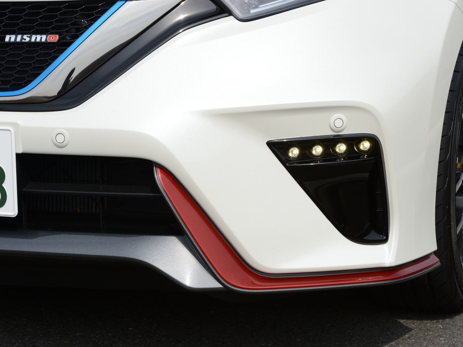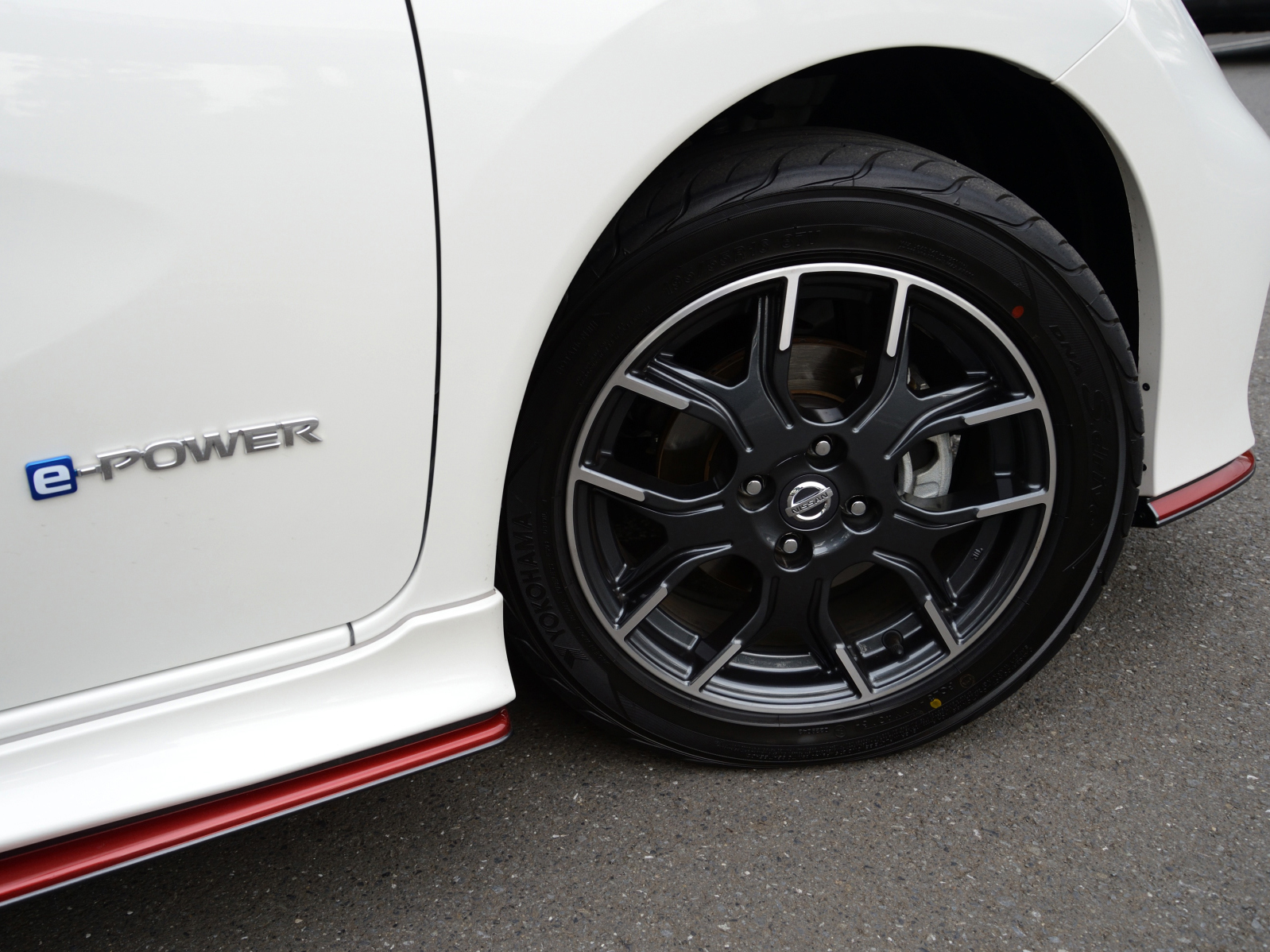さて、初対面となったノート e-POWER ニスモですが、その佇まいは「フェアレディZ ニスモ」や「ジューク ニスモ」など、一連のシリーズに通じる凛々しさとたくましさを備えたもの。