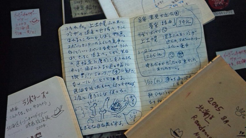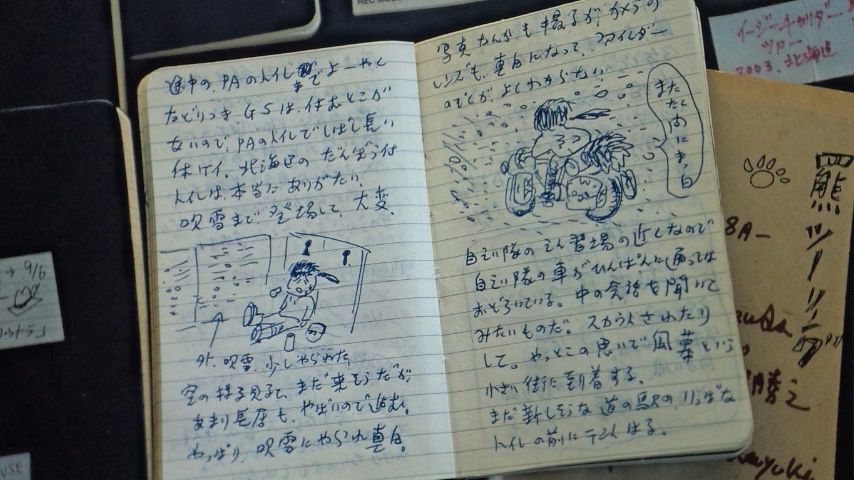 自転車旅でキャンプツーリングのため、ほとんどがテントの中で書いている。時には疲れ果てて、その日には書かず数日後に二日分や三日分をまとめて書く場合もある。なるべくイラストを描くようにしているが、描かない場合もあり、その日の気分次第だ。