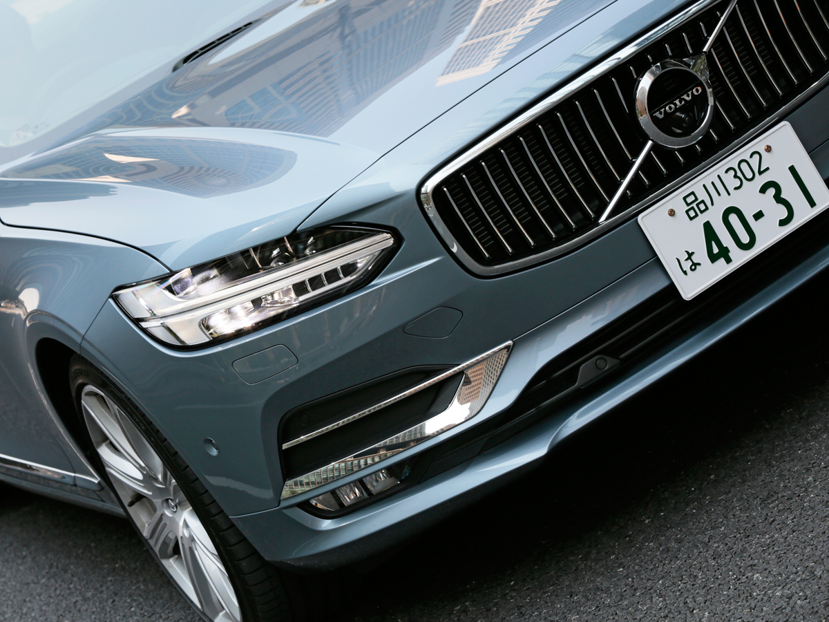 S90のボディサイズは、全長4965×全幅1890×全高1445mm。例えば、メルセデス・ベンツ「E400 4マチック エクスクルーシブ」が全長4930×全幅1850×全高1455なので、極端に大きい、というわけではないのですが、フロントノーズが長めな上、ボンネットがよく見えないこともあり、慣れるまでは余計に大きく感じるのでしょう。