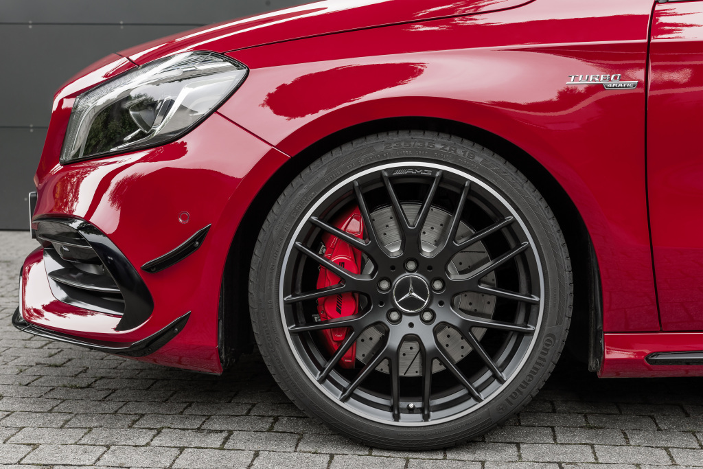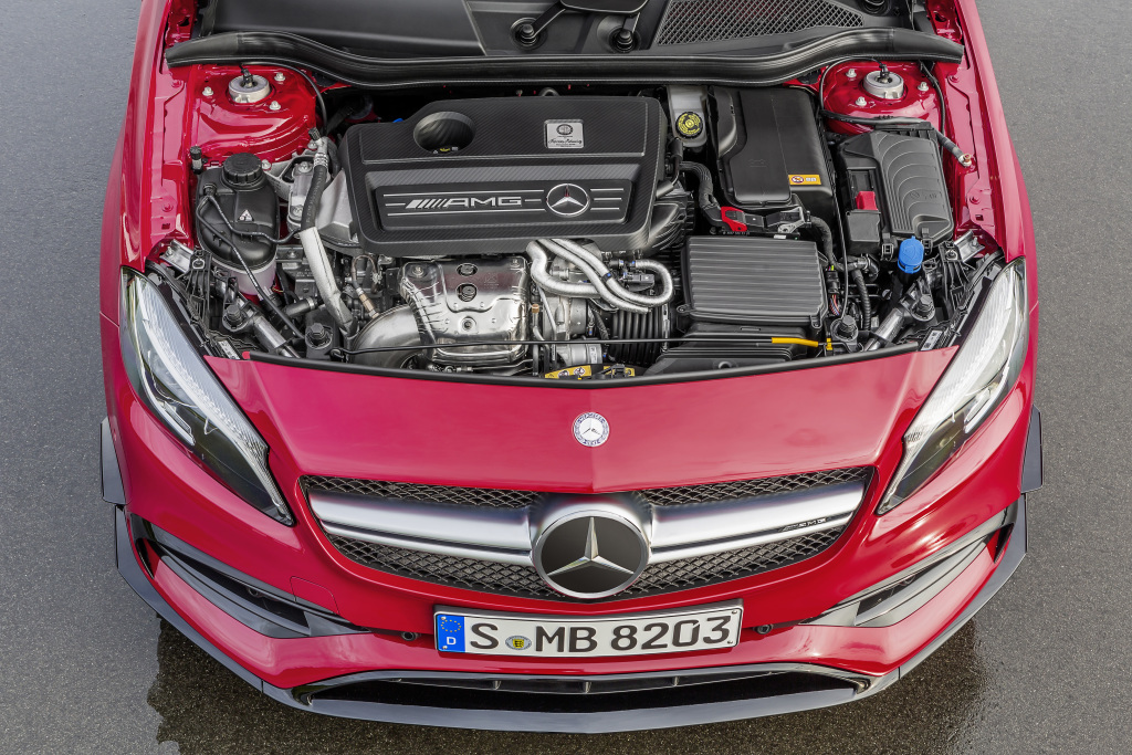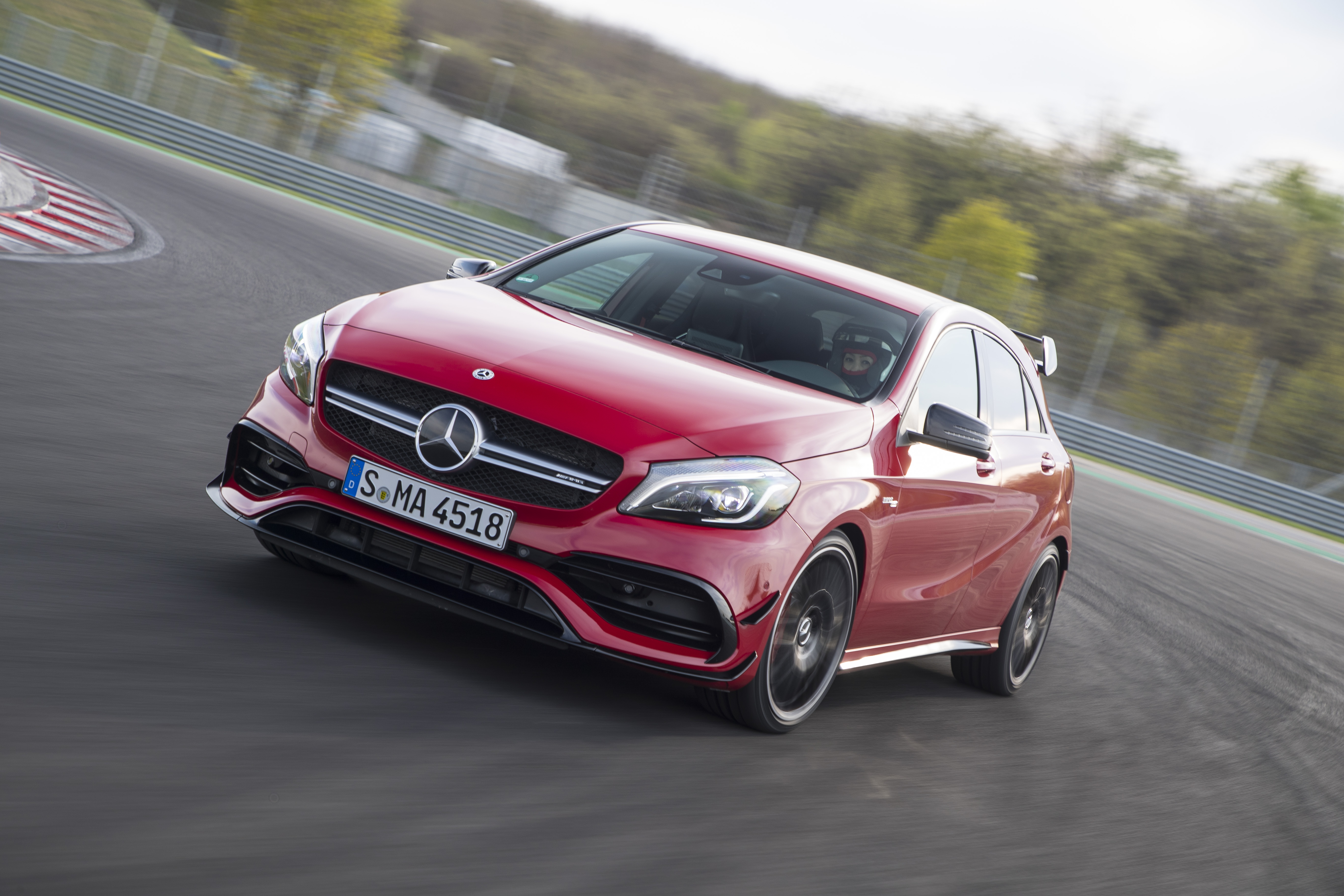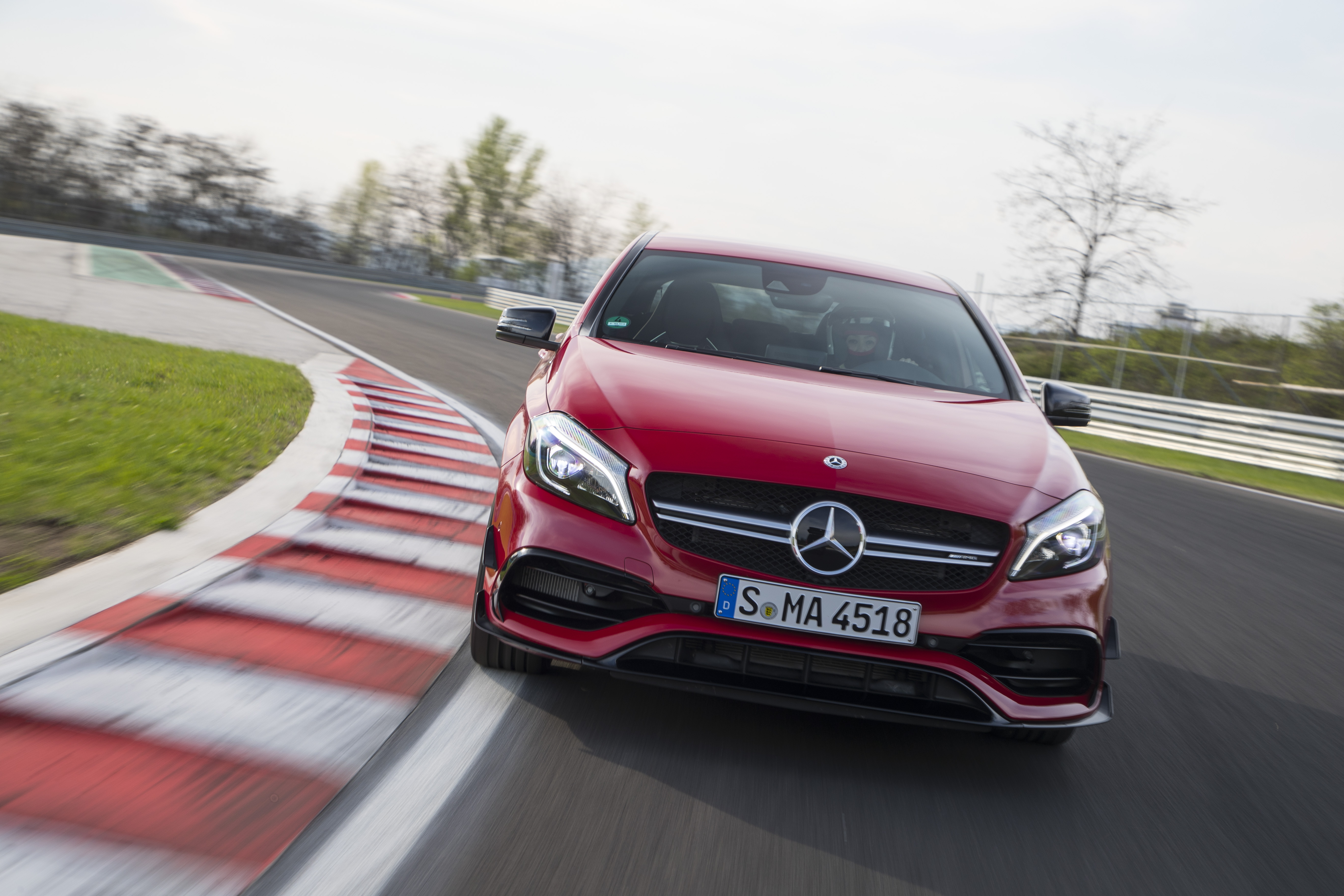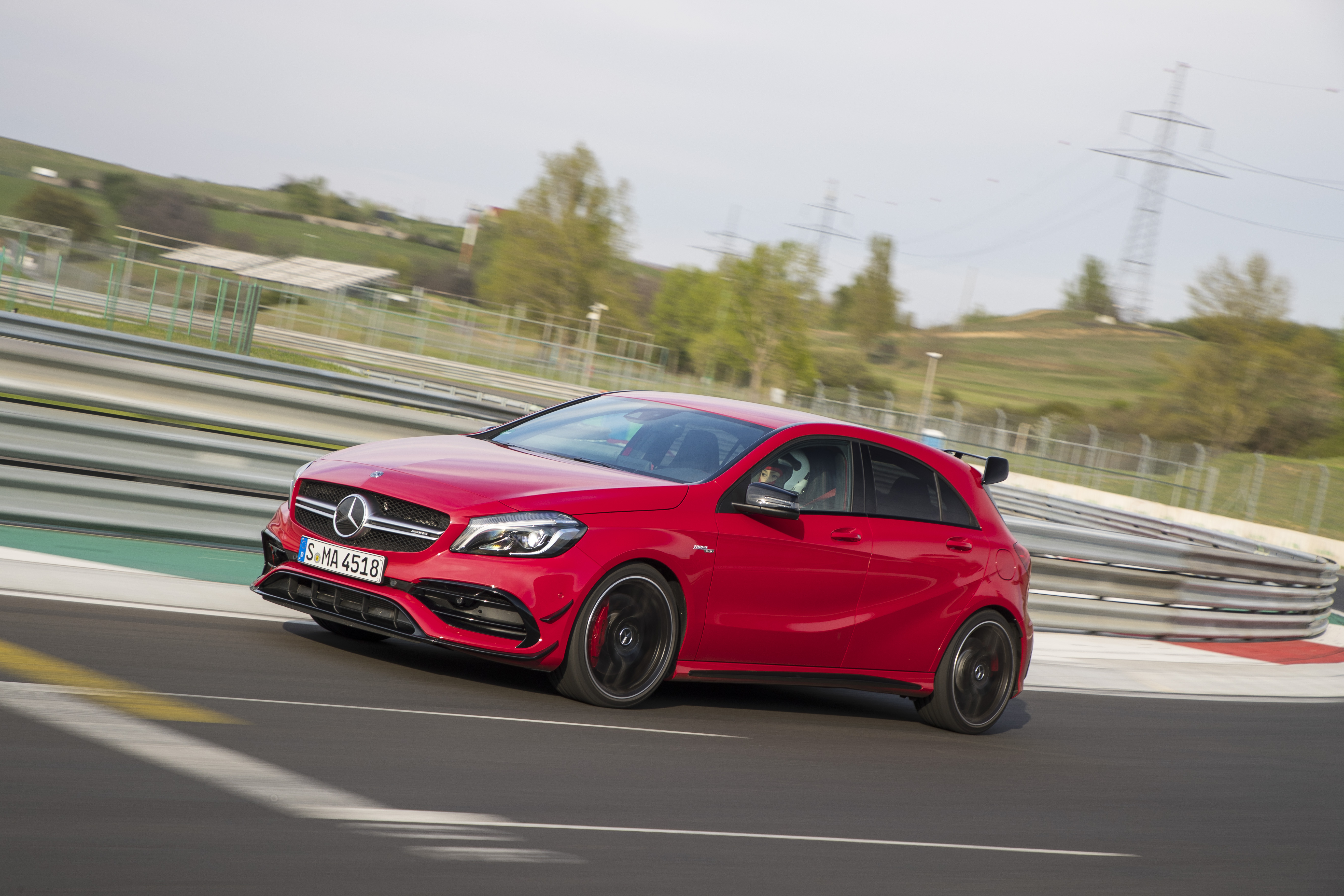 ハンガロリンクは、F1のハンガリーGPが開催されることでも有名な、全長約4kmのサーキット。高低差が大きく、小さくてタイトなコーナーが多いのが特徴です。そこを走るA45は、2リッターの直列4気筒ターボエンジンながら、360馬力をただき出す超パワフルモデル。静止状態から100㎞/hまでは、わずか4.6秒で加速します。