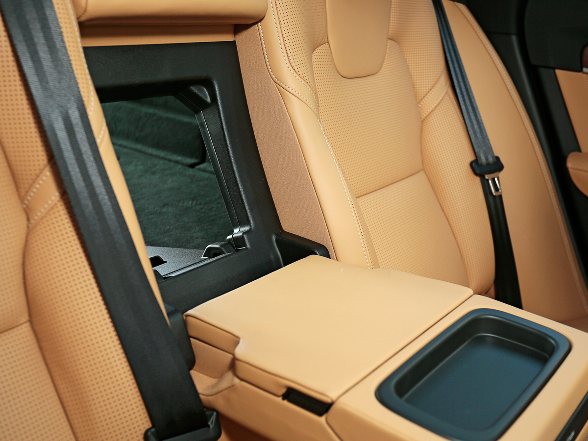 内装は、XC90が先行して披露していたように、暖かみあるレザー、ウッドパネル類と、ハイテクの象徴たる大型ディスプレイ(メーターは12.3インチ、センターコンソールは9インチの縦型)を上手に組み合わせ、全体として瀟洒にまとめあげています。