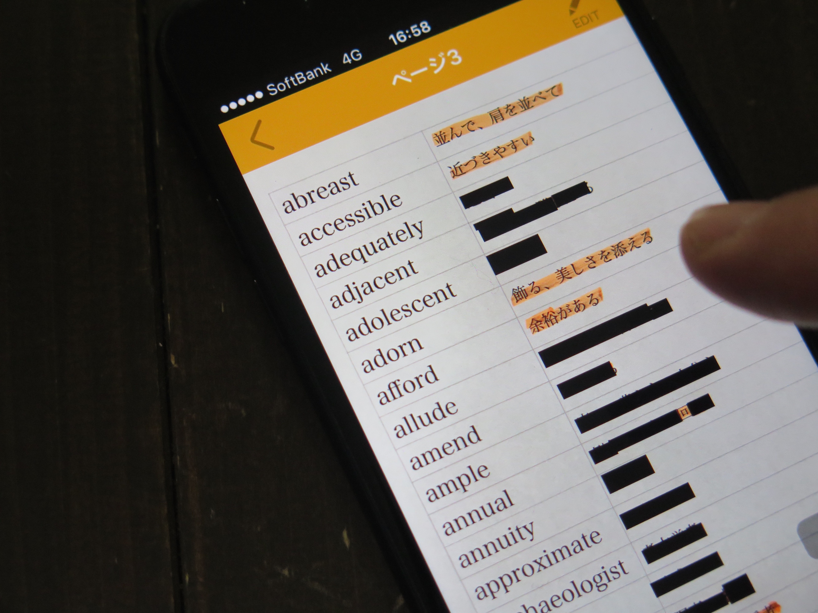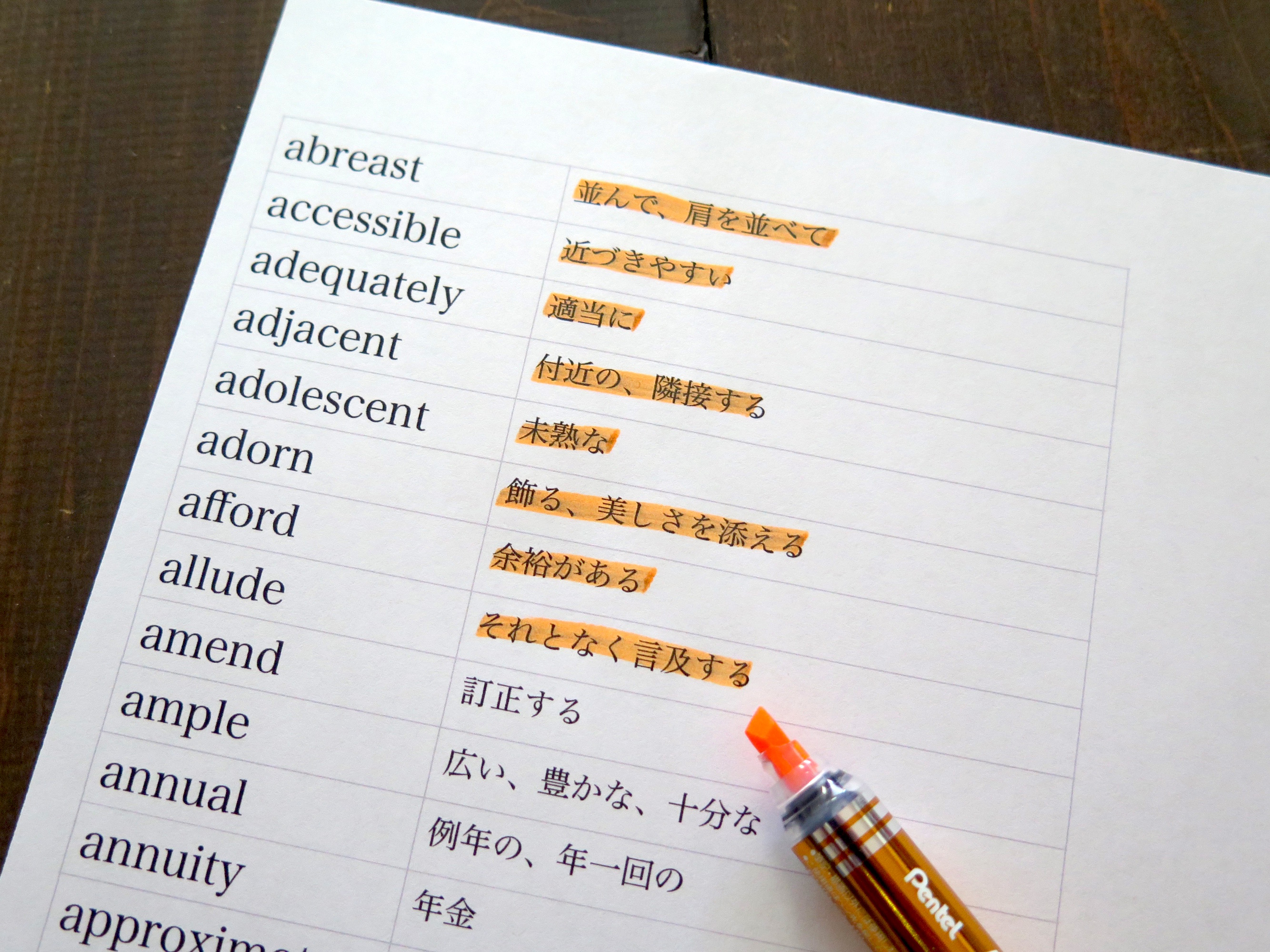 ▲実際には市販のTOEIC向け教材で試したが、ここに載せる許諾は得ていないので、自作の英単語シートでの手順で紹介。このように、なかなか覚えられない単語を書き出して、それらを読み取るのもオススメ