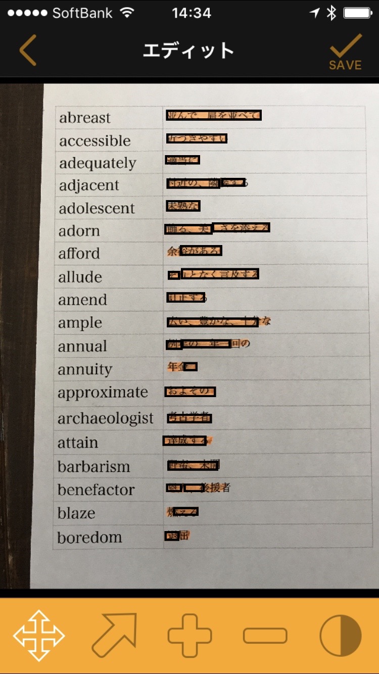続いて、「スマホで暗記」の使用感も紹介しておきましょう。こちらも読み取り方法は同じです。暗記したい部分をオレンジのマーカーで塗って、「AnkiSnap」アプリで読み取ります。
