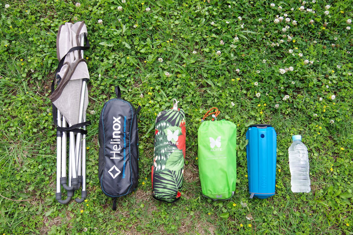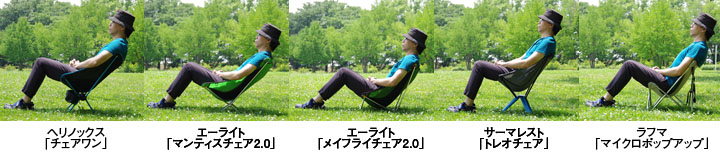 構造上どうしても大きくなってしまうラフマの「マイクロポップアップ」以外は、どれもかなりコンパクトです。これなら小さめのデイパックにも余裕で入るぐらい小さい。こんな小さなモノが、本当にリラックスできるチェアに変身してくれるのでしょうか?