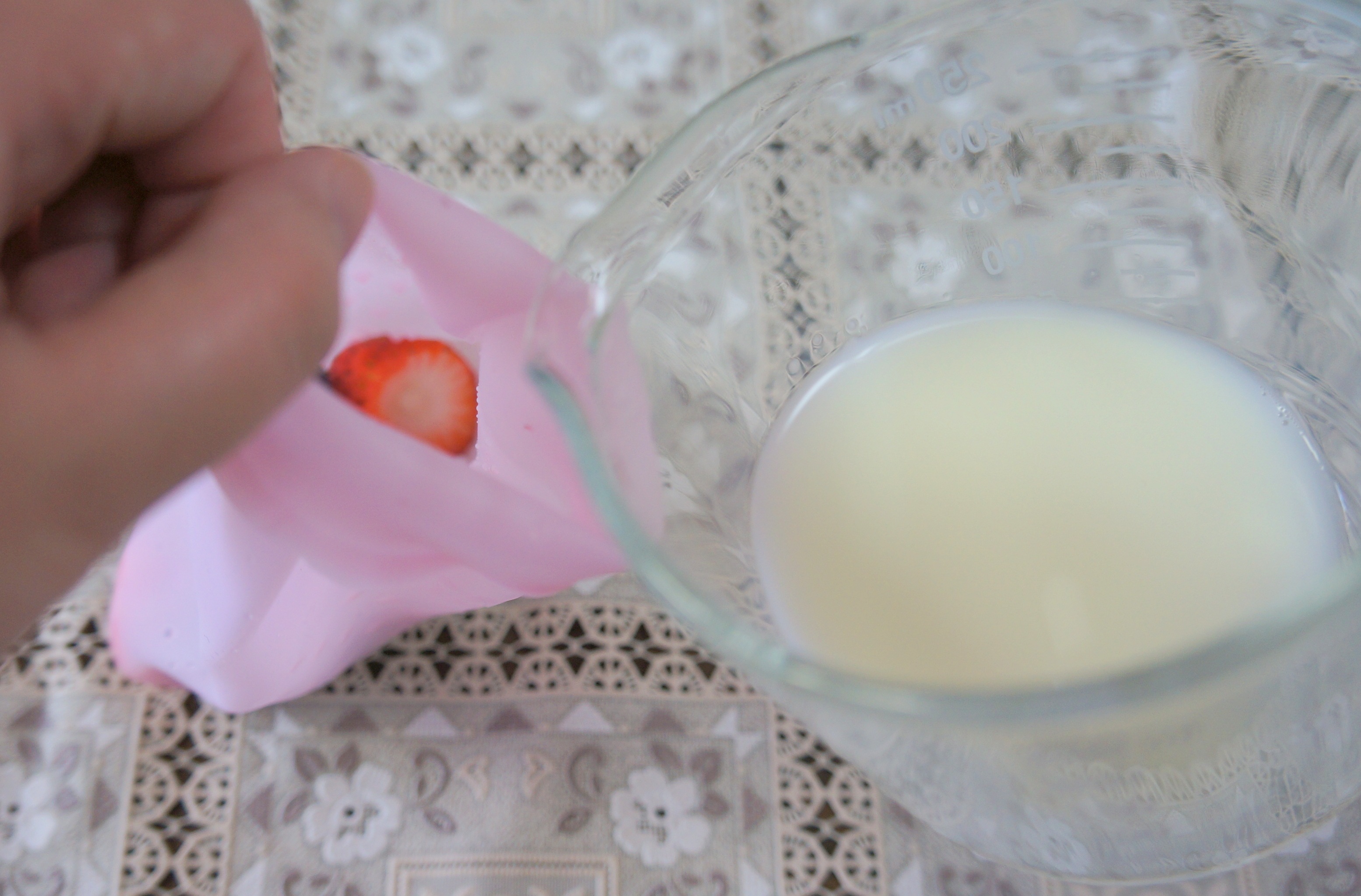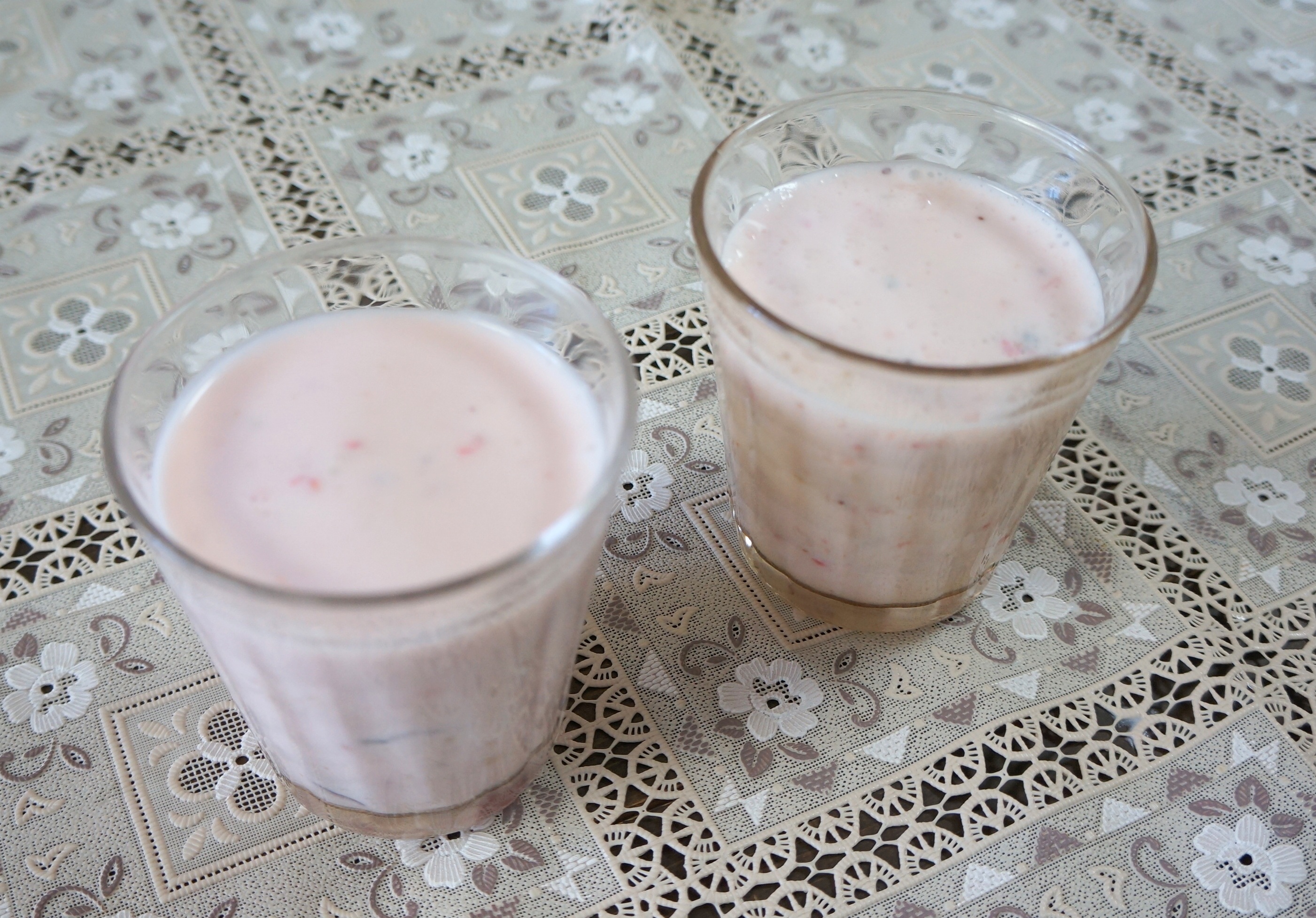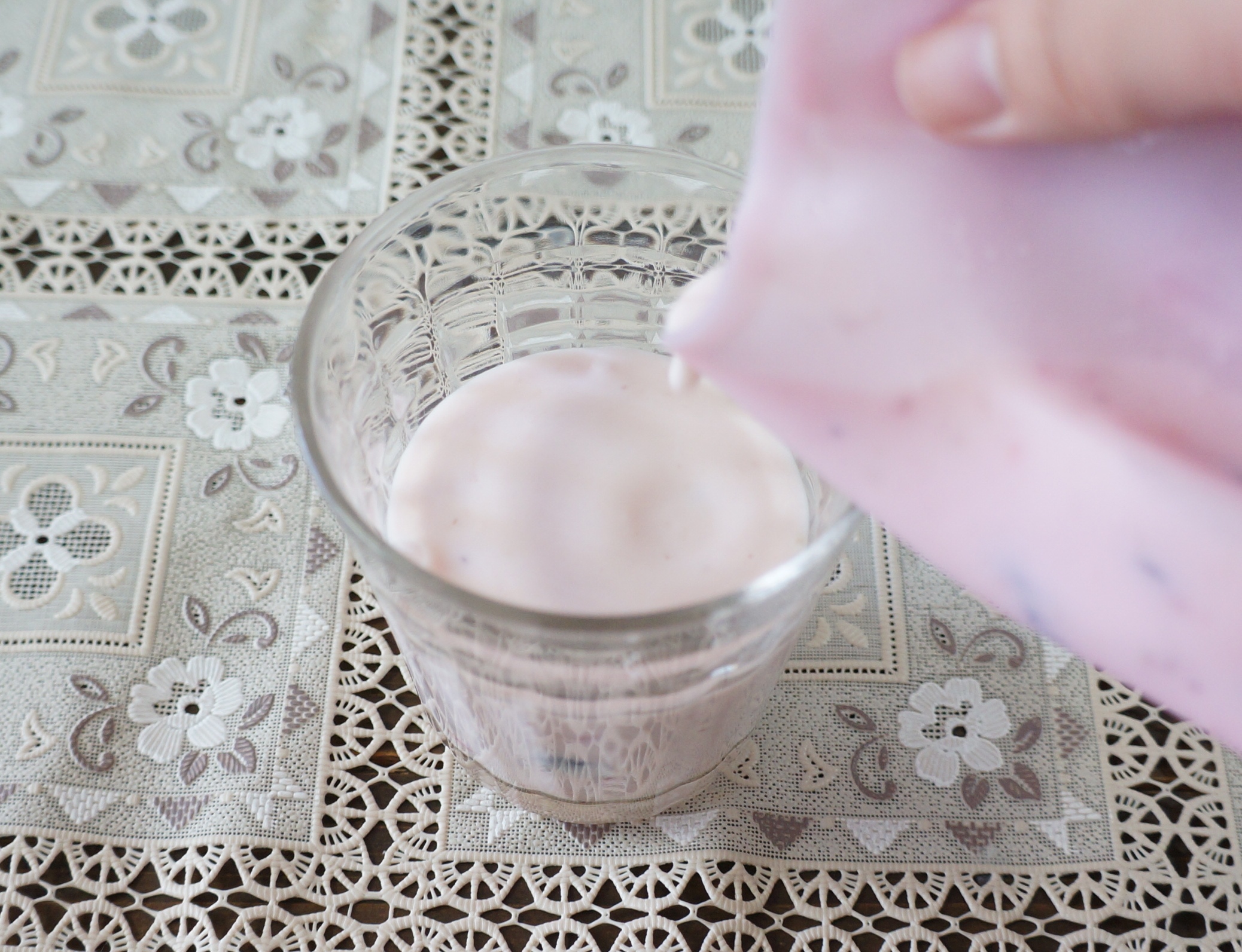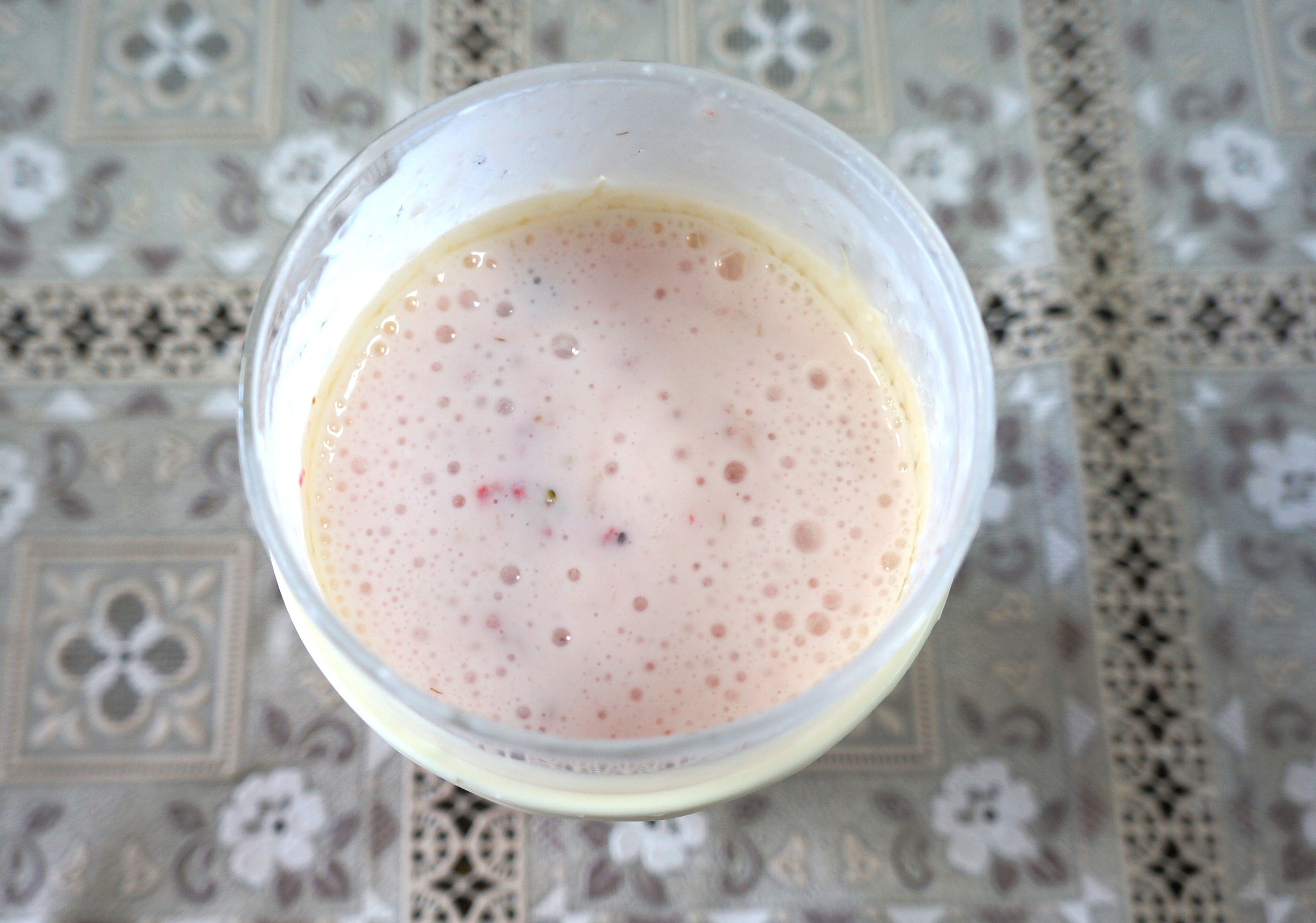 仕上がったスムージーをほかのコップにあけると…
