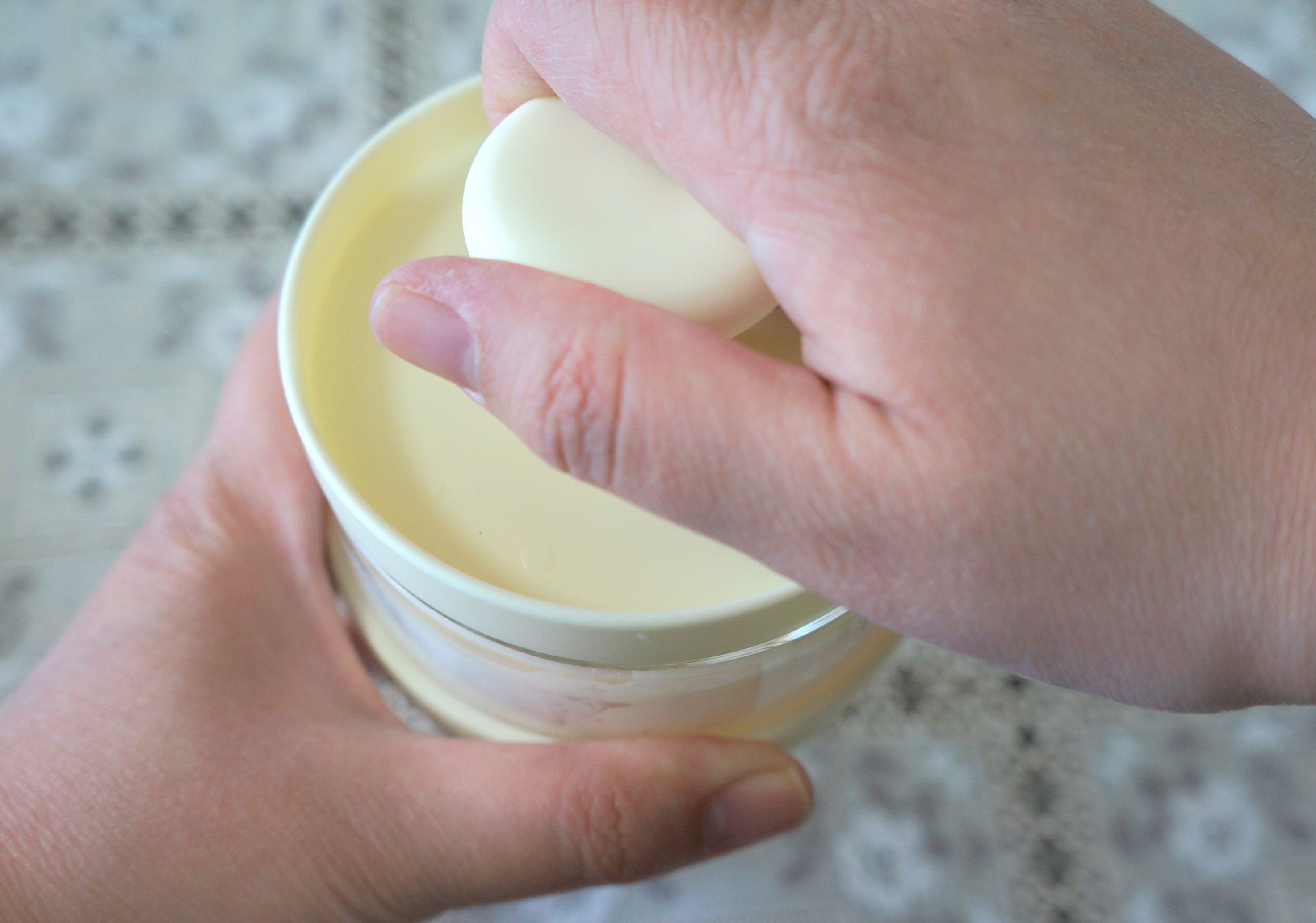 キャップを閉めたら、ボトルを上下さかさまにして、本体にセット。このとき、キャップ部分の「▼」と、本体の「▲」がくっつくようにしてください。