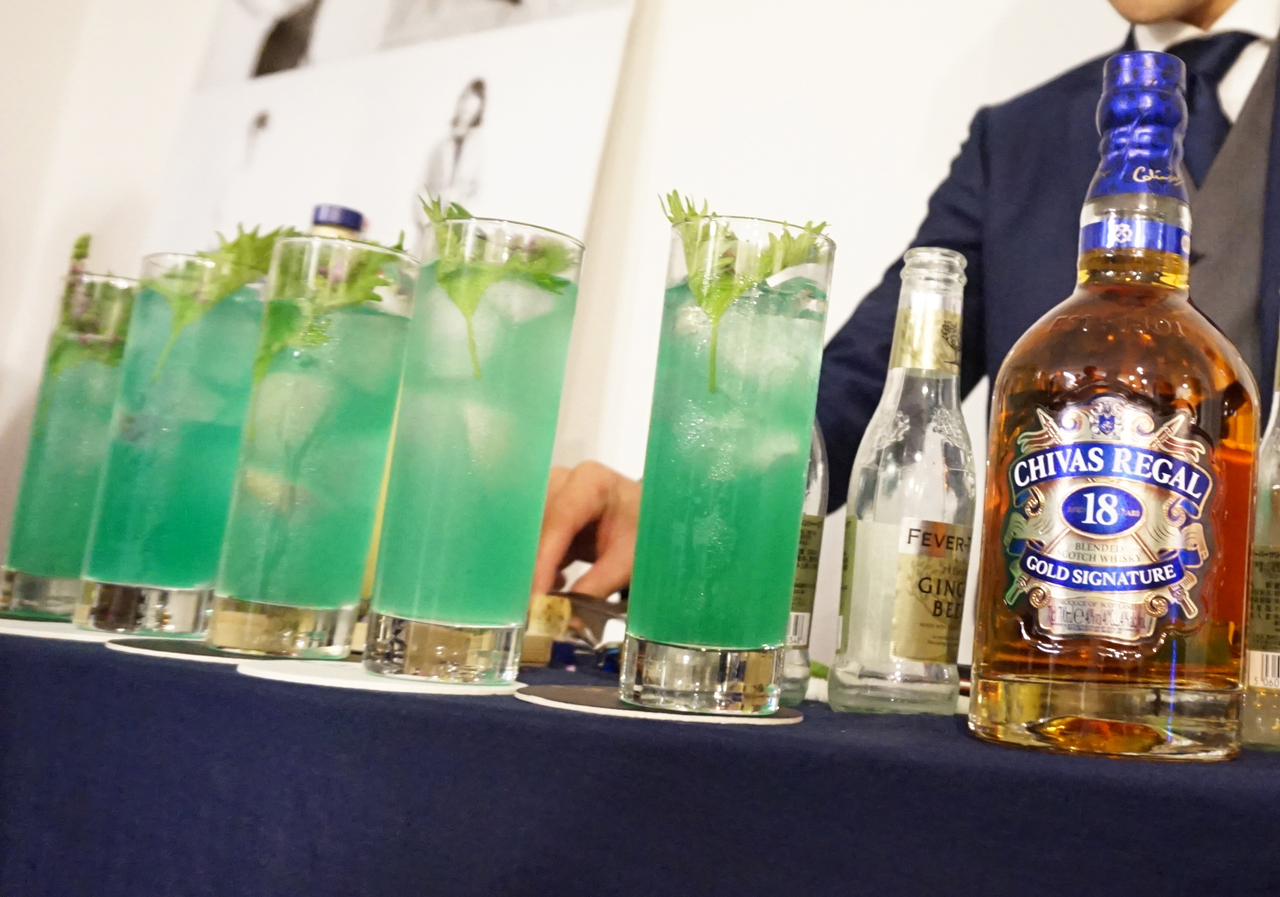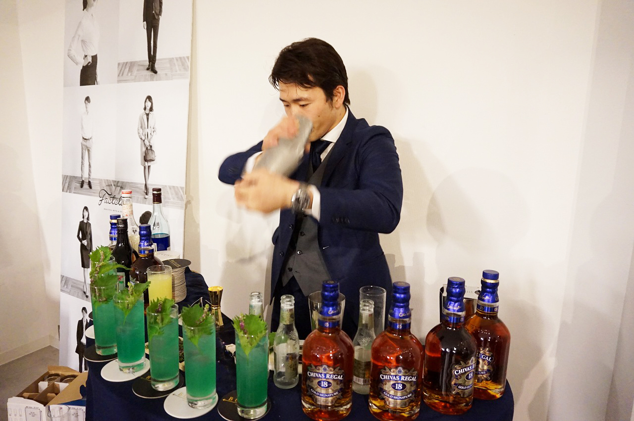 プレゼンテーションと新作お披露目会の後、カクテルコンペティション「ザ・シーバス・マスターズ 2016」日本代表のバーテンダー・水岸直也さんによるオリジナルカクテルが振舞われました。