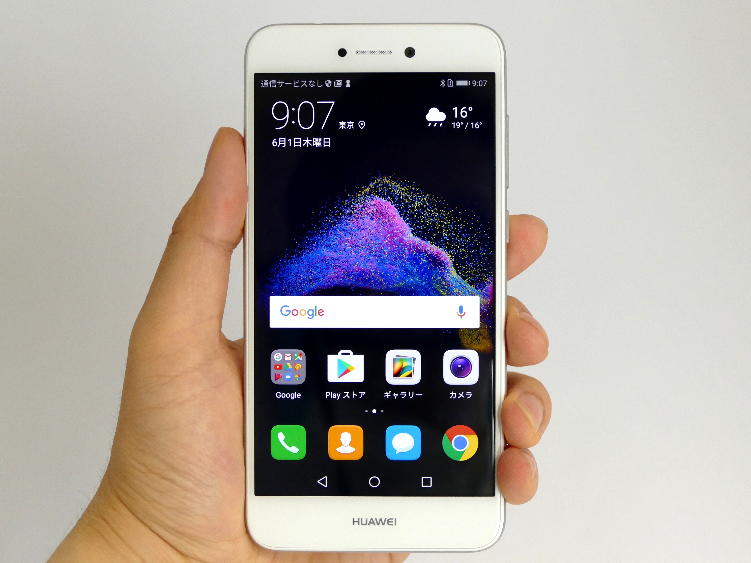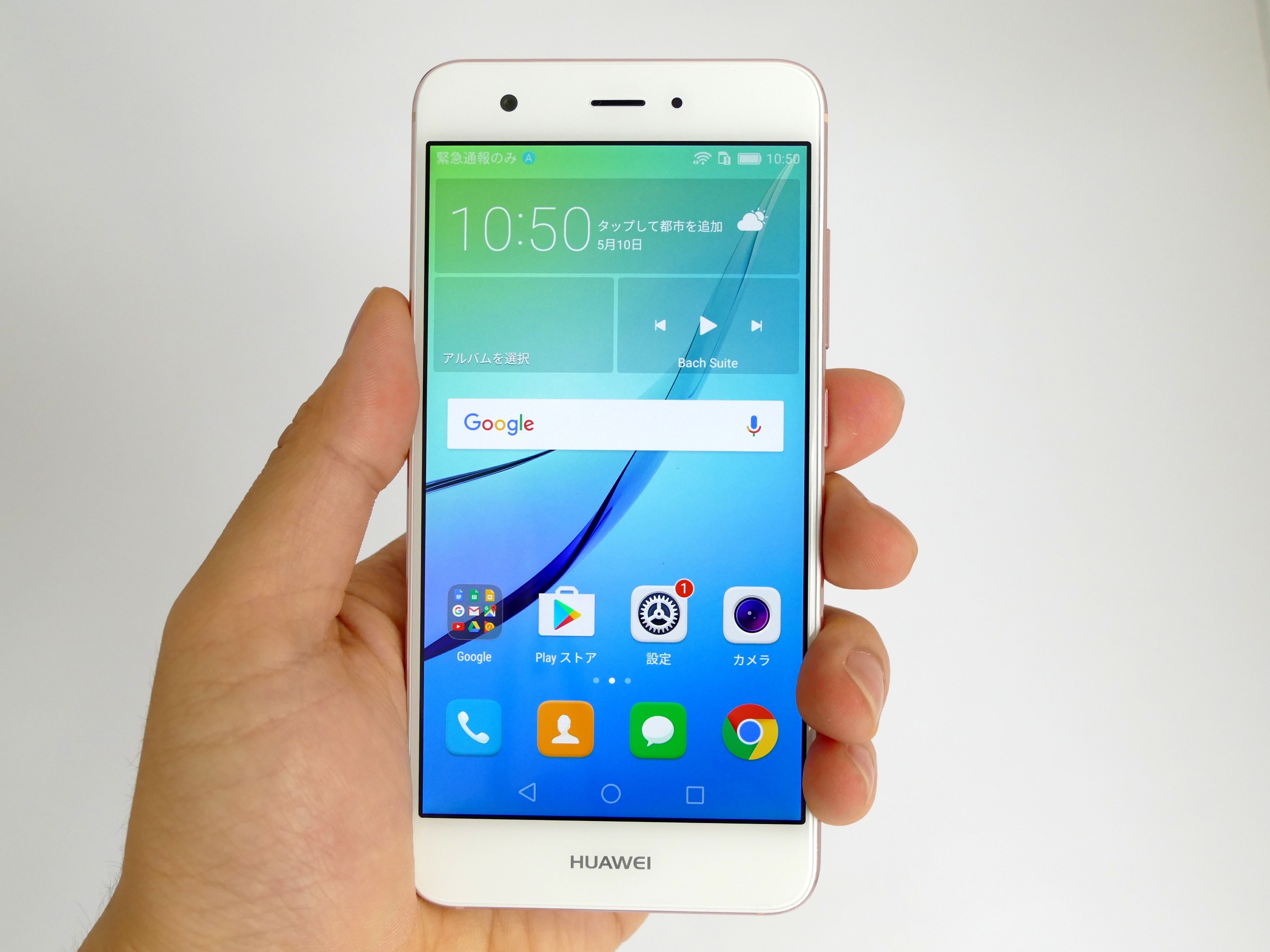 背面カメラは1200万画素。P9のようなデュアルレンズではありませんが、普段使いには十分な画質で撮影できます。前面カメラは800万画素でF値2.0です。