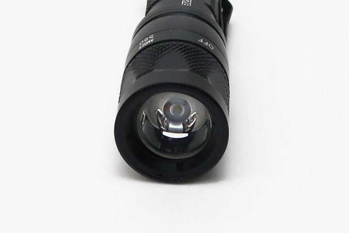 これにより集光性がアップ。光量250ルーメンというと今となっては見劣りするスペックですが、中心のスポットの明るさは1000ルーメン&1インチクラスのライトに引けを取りません。SUREFIREのTIRのもう一つの特徴、薄く広い周辺光も発生しますので、特に廊下やトンネルなどで奥行きがある場合には使いやすい視界が得られます。