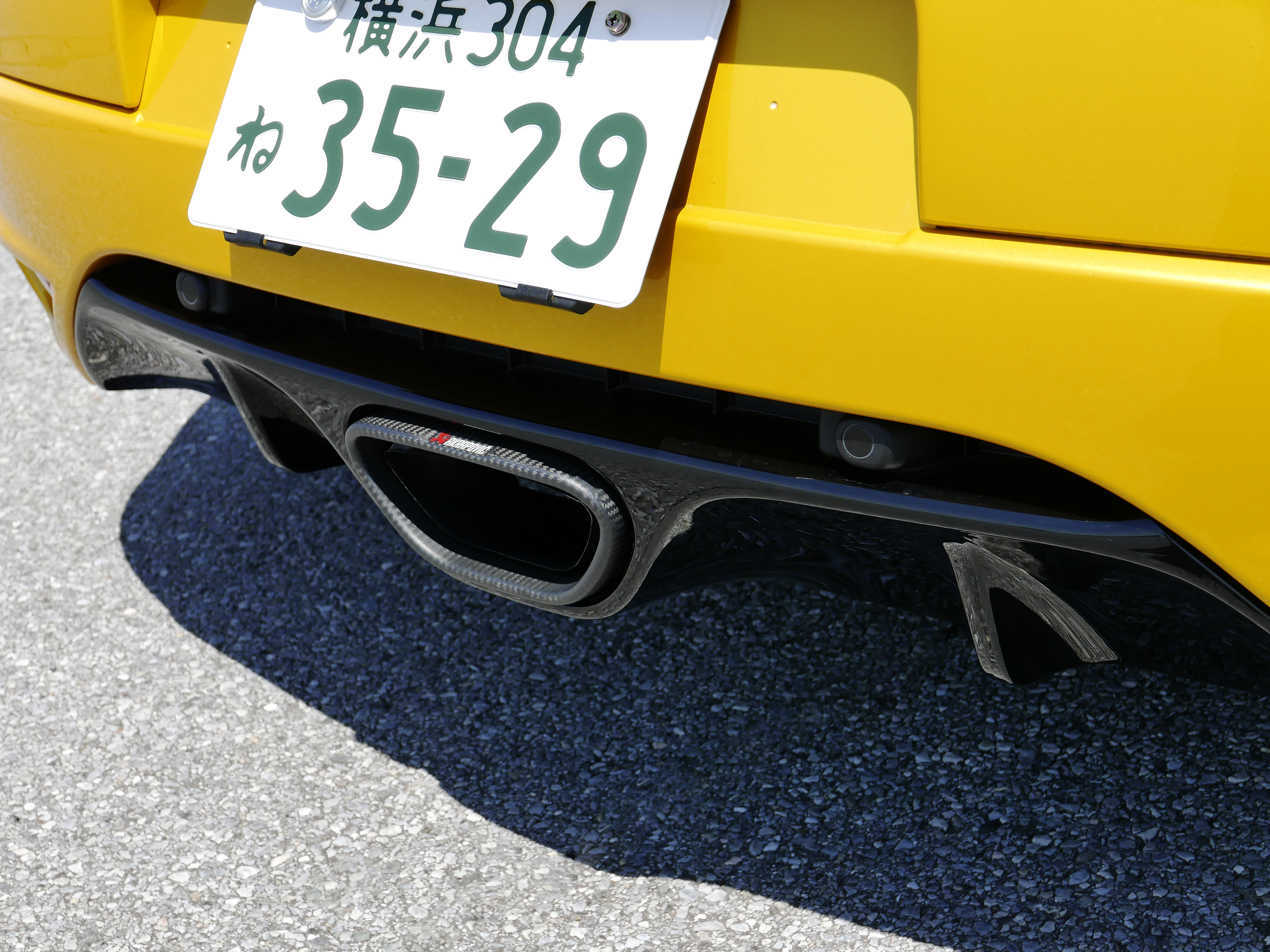 高速道路に入り、モードを「スポーツ」に切り替えると、チタン製スポーツマフラーからはき出される排気音はさらに野太くなり、アクセルをオフにすると「パンッ、パンッ」というアフターファイヤーの音も耳に入ってきて、気分をさらに高めてくれます。ちなみにこのマフラー、音の演出だけにとどまらず、ノーマルのそれと比べて4kg軽く仕上がっているなど、機能性の高いパーツとなっています。