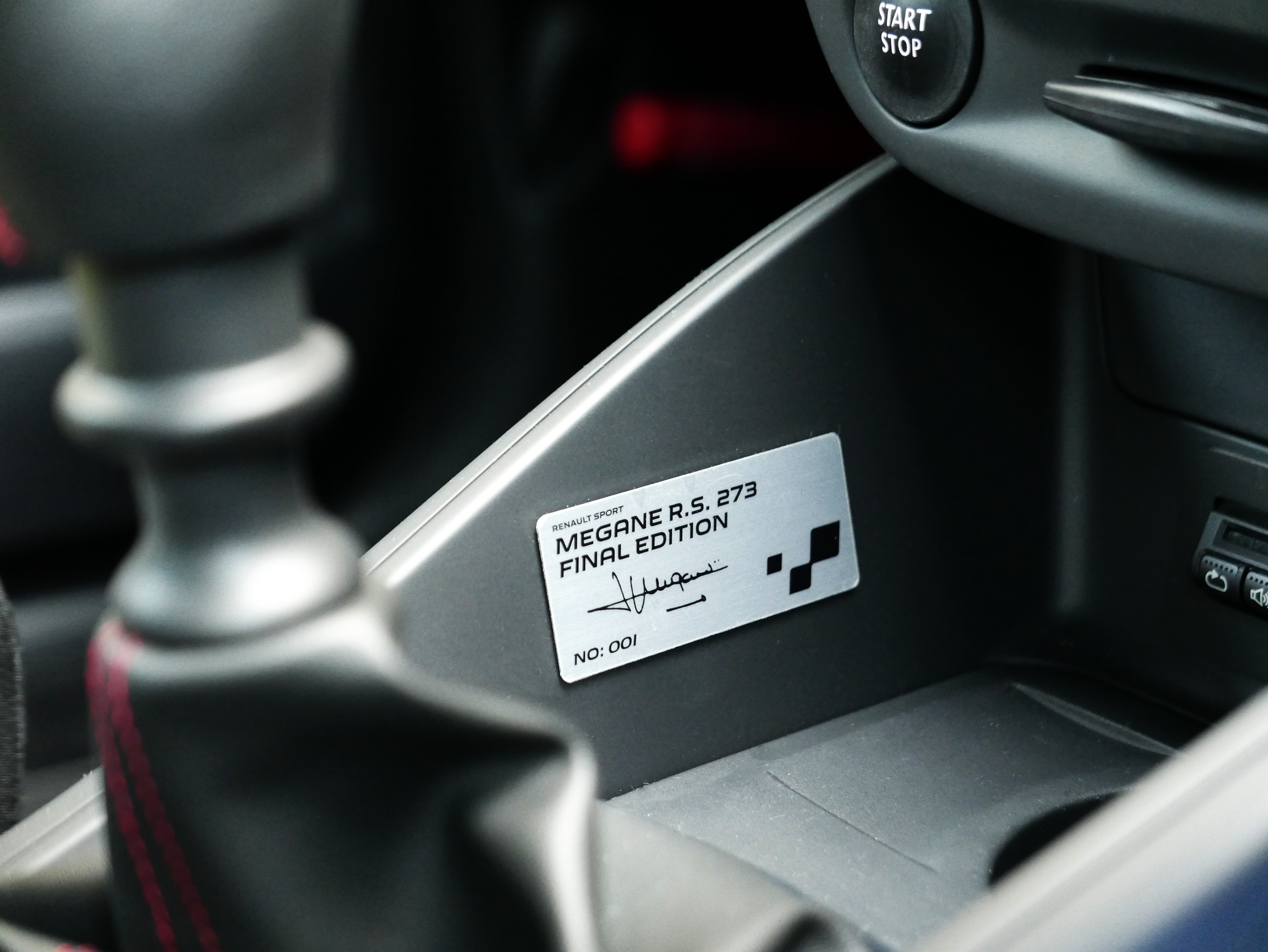今回ドライブしたのは、そうした輝かしい歴史の有終の美を飾るべくリリースされた特別仕様車メガーヌ RS 273 ファイナルエディションに、アクラポヴィッチ製のチタンマフラーや、マルケジーニの軽量鍛造アロイホイールを装備した、まさに特別な1台の「メガーヌ RS 273 パックスポール」(限定20台)。ボディサイドのシルバーのデカールや、ルノー・スポールのテストドライバー、ロラン・ウルゴン氏のサイン入りシリアルナンバープレートも、パックスポーツ専用のディテールです。